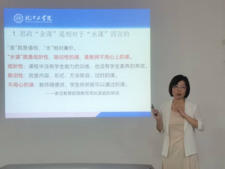 会上,张春艳副教授以习总书记318讲话为背景引入,从新时代高校思政课教师的岗位职责与要求、一堂好课(金课)的标准、如何上好思政课这门“关键”课程等三个方面进行了详细的讲解。她提到,思政课教师是铸魂育人的中坚力量,首要职责是讲好思政课,落实立德树人根本任务,上好思政“金课”,不断增强“两性一度”。作为思政课教师,要具有高度的政治站位,加强理论学习,钻研教材、做好科研、练好内功,提升教学艺术,讲究“润物细无声”的方式方法,丰富教学内容,实现“三个体系”转化,坚持不懈地强化自身修养,做经师更要做人师、大师。