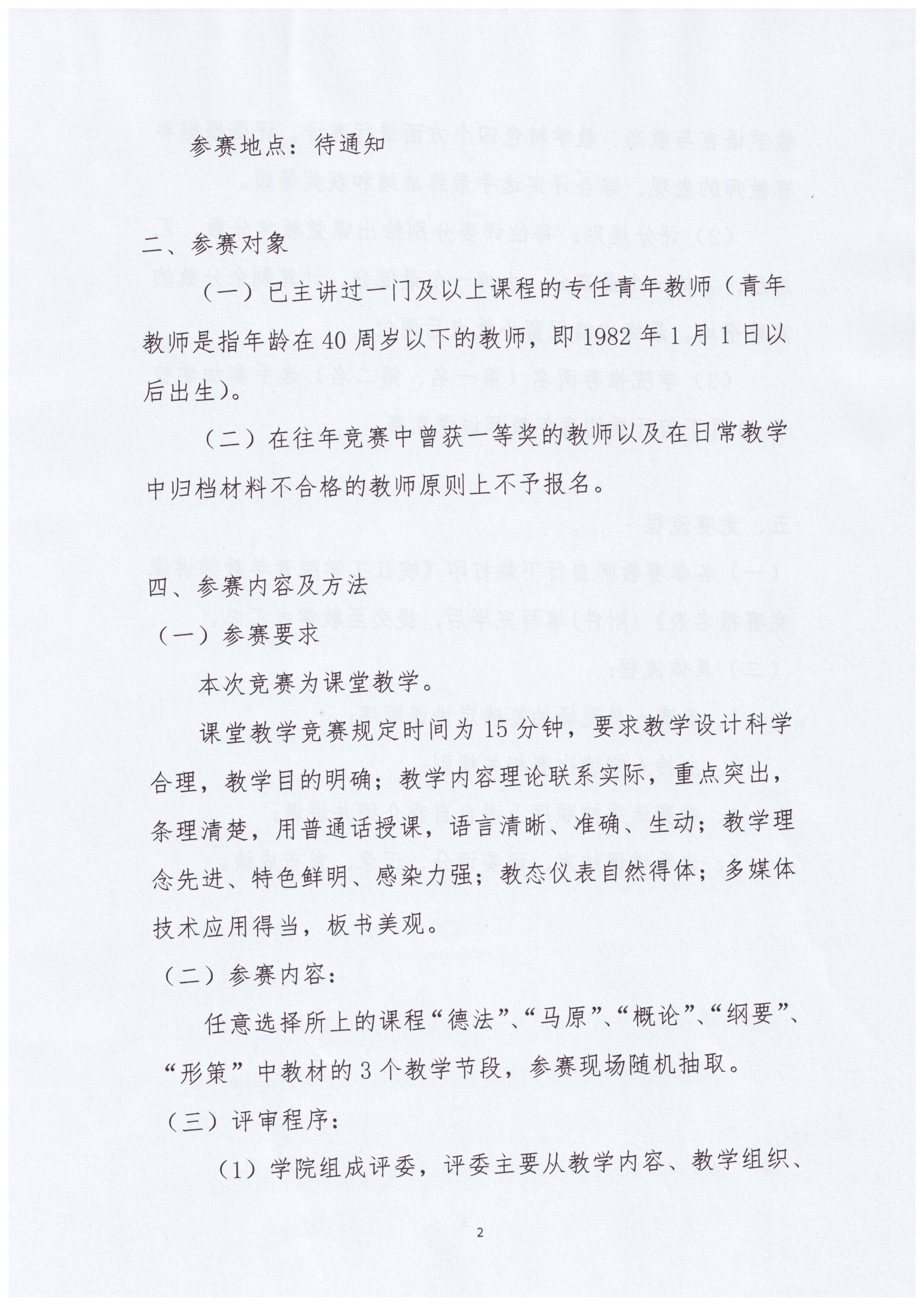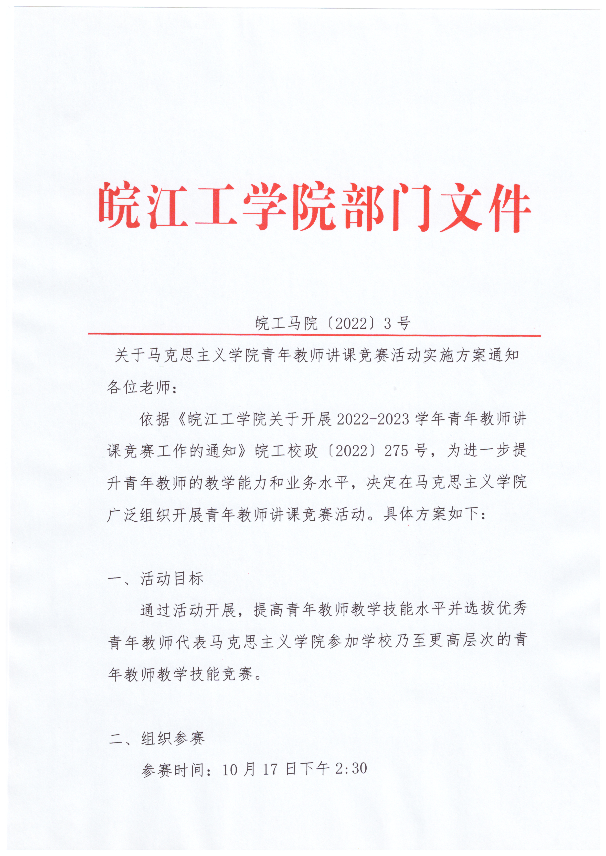 关于马克思主义学院青年教师讲课竞赛活动实施方案通知