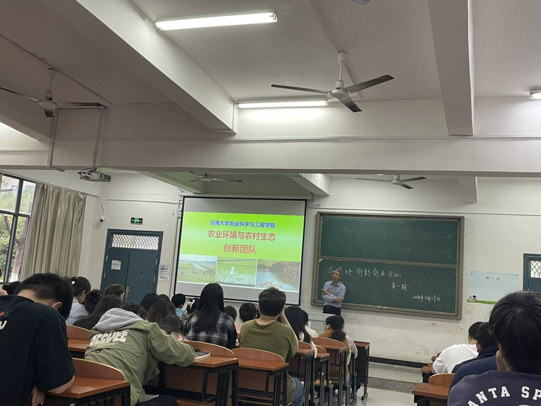 王为木副教授首先重点介绍了河海大学农业科学与工程学院创新团队,包括立项的思路拓展,团队的成立和分工及参赛经验介绍。其带领的“农村环境与农村生态创新团队”是河海大学农业科学与工程学院中的一只重要队伍,主要研究水生态系统健康与生态修复、面源污染迁移机理及防治、河湖滨岸带边缘效应机理与应用、饮水安全评价与保护。随后王为木教授从土壤科学的发展与前景的角度展开详细分析与介绍,为同学们拓展思路提供方向。主要内容包括土壤科学发展现状、土壤科学发展总体态势、土壤科学发展重点思考以及我国土壤科学的发展前景等内容,深入浅出,通俗易懂,同学们获益匪浅。