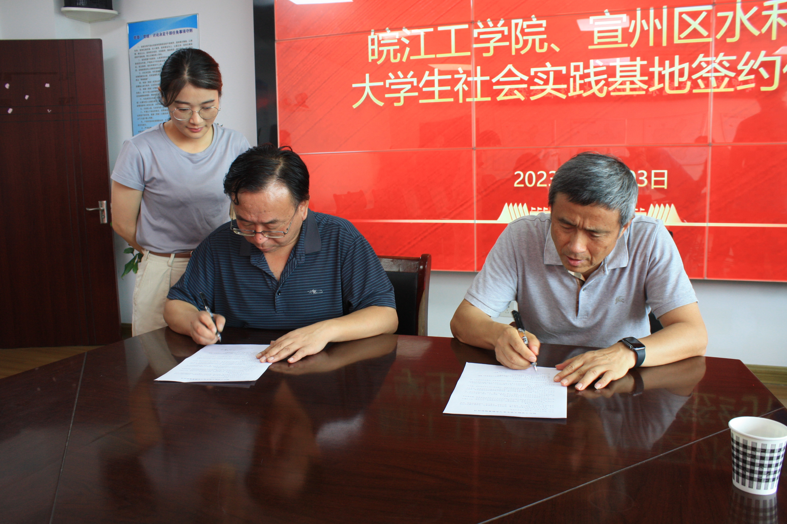 随后,宣州区水利局党委委员朱自强就目前省内高校水利类专业毕业生的就业现状及人才培养提出了自己的想法和建议。并与我院签订了《人才培养与就业基地建设合作协议书》与《实习实践基地建设合作协议书》。