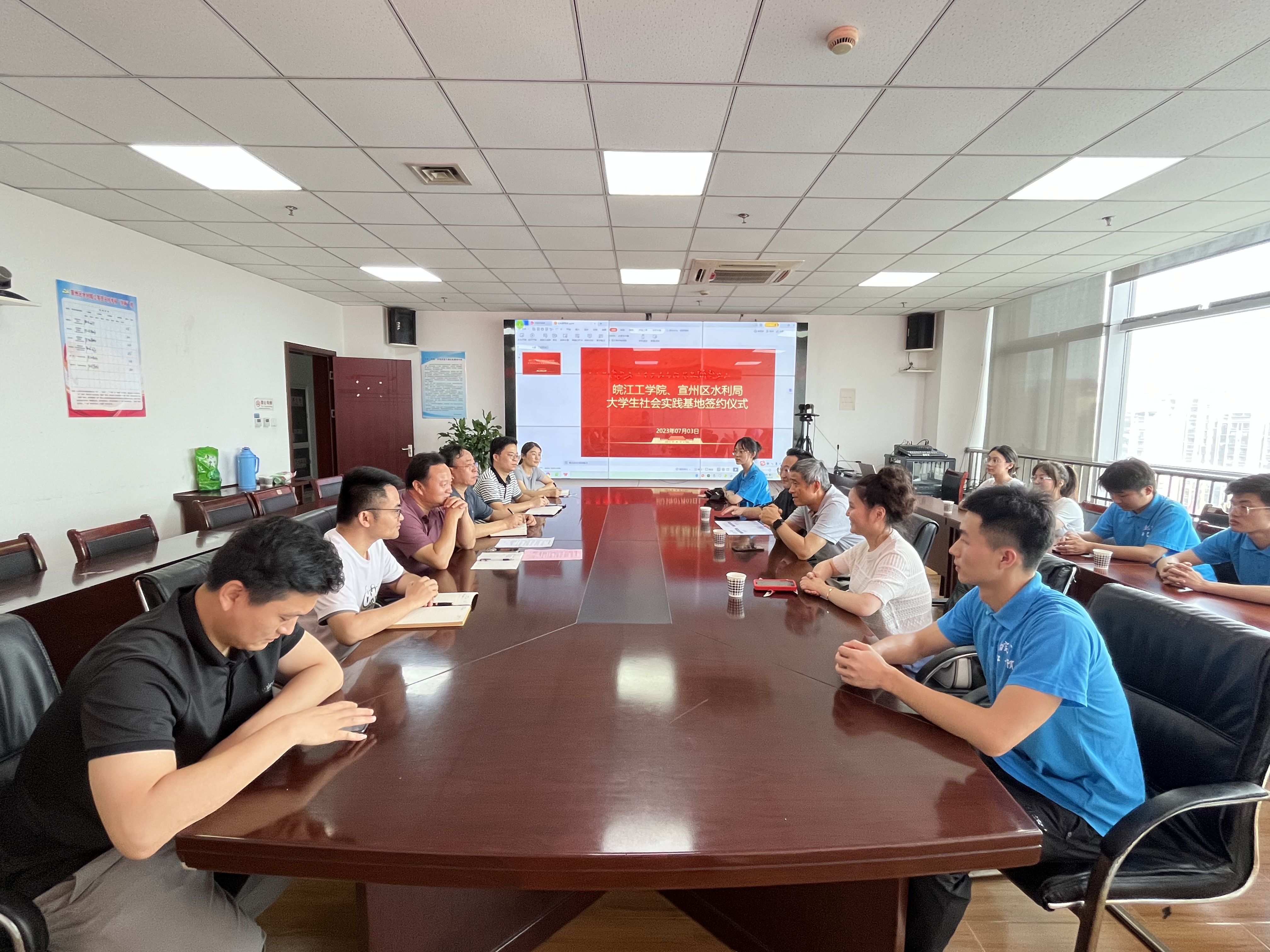 为促进人才培养与就业实习实践基地建设,我院于7月3号日上午在宣城市宣州区水利局成功举行“访企拓岗"暨“三下乡"大学生暑期社会实践活动研讨会议。水利工程学院党总支书记李冠华、副书记王秋玉、分团委书记陈少博,宣州区水利局副局长何小兵、党委委员朱自强出席,宣州区水利工程建设所所长胡成新主持,2014届水工专业陈秀秀等4位优秀校友代表及水利工程学院"三下乡"暑期社会实践活动“走进宣州区水利局”项目团队学生队员们列席了本次会议。