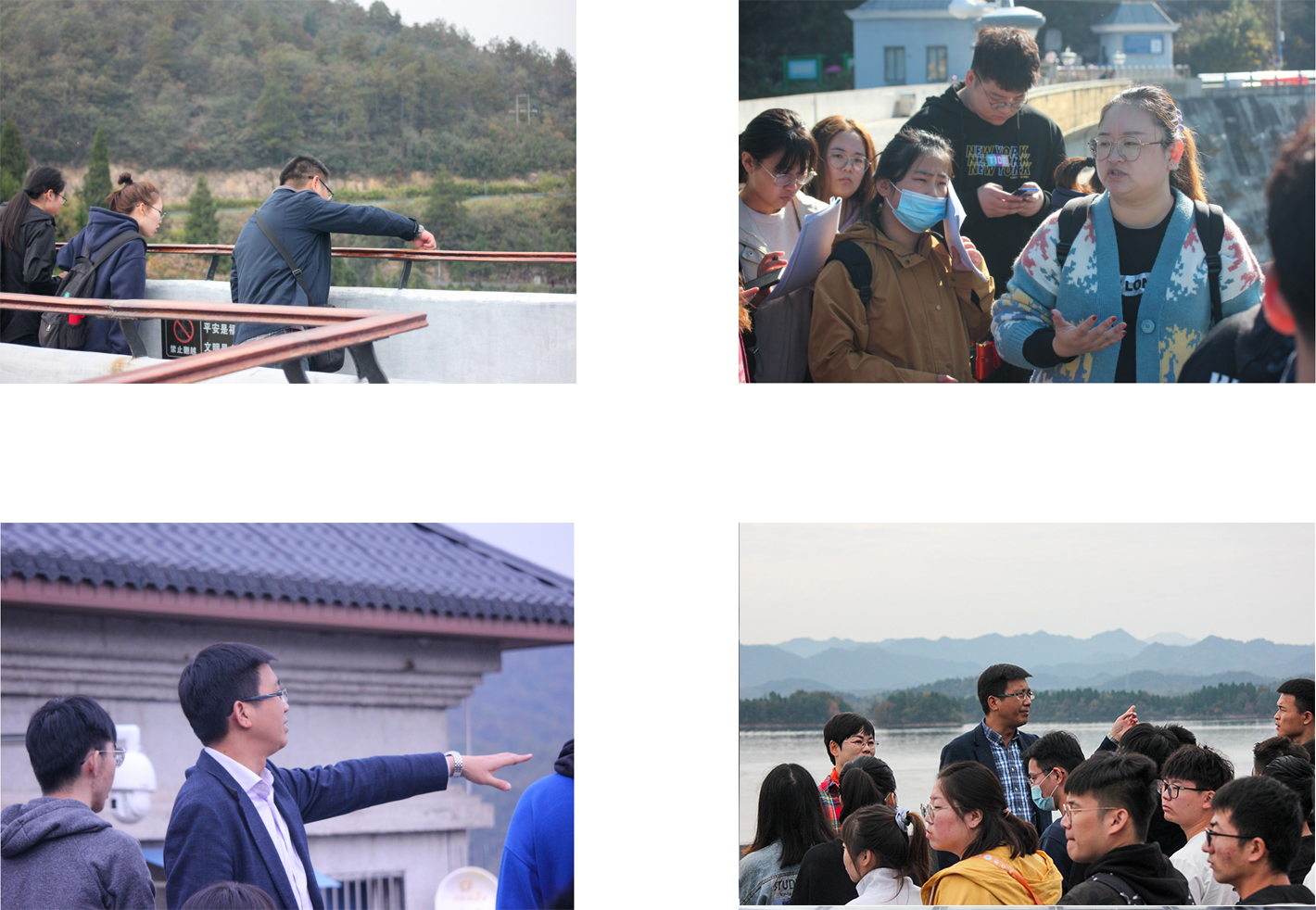 淠史杭灌区有“水利博物馆”之美誉,水工建筑物类型较为齐全。同学们分别参观了梅山水库、响洪甸水库和龙河口水库。三座水库均肩负着防洪、灌溉和发电三大作用,对皖西乃至全省的经济发展和社会稳定起到了十分重要的作用。在水库管理技术人员和带队教师的精心讲解下,同学们对水利枢纽的各种挡水、泄水、输水建筑物有了一定的认识,对枢纽及水电站的组成、典型布置方式及其运行管理有了一定的了解。