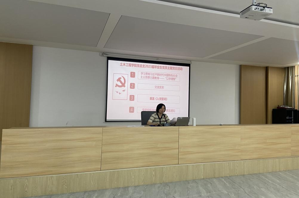 为加强毕业班学生党员的先进性和纯洁性教育,进一步坚定理想信念,加强理论学习,提高自身素质,顺利实现就业和角色转变,迎接社会挑战与考验,争做一名合格共产党员,永葆共产党员的政治本色和先进性,2023年6月2日上午,土木工程学院在西301报告厅组织开展了2023届毕业生党员主题党日活动。学院党总支书记王瑜及各学生支部书记参加了本次活动。