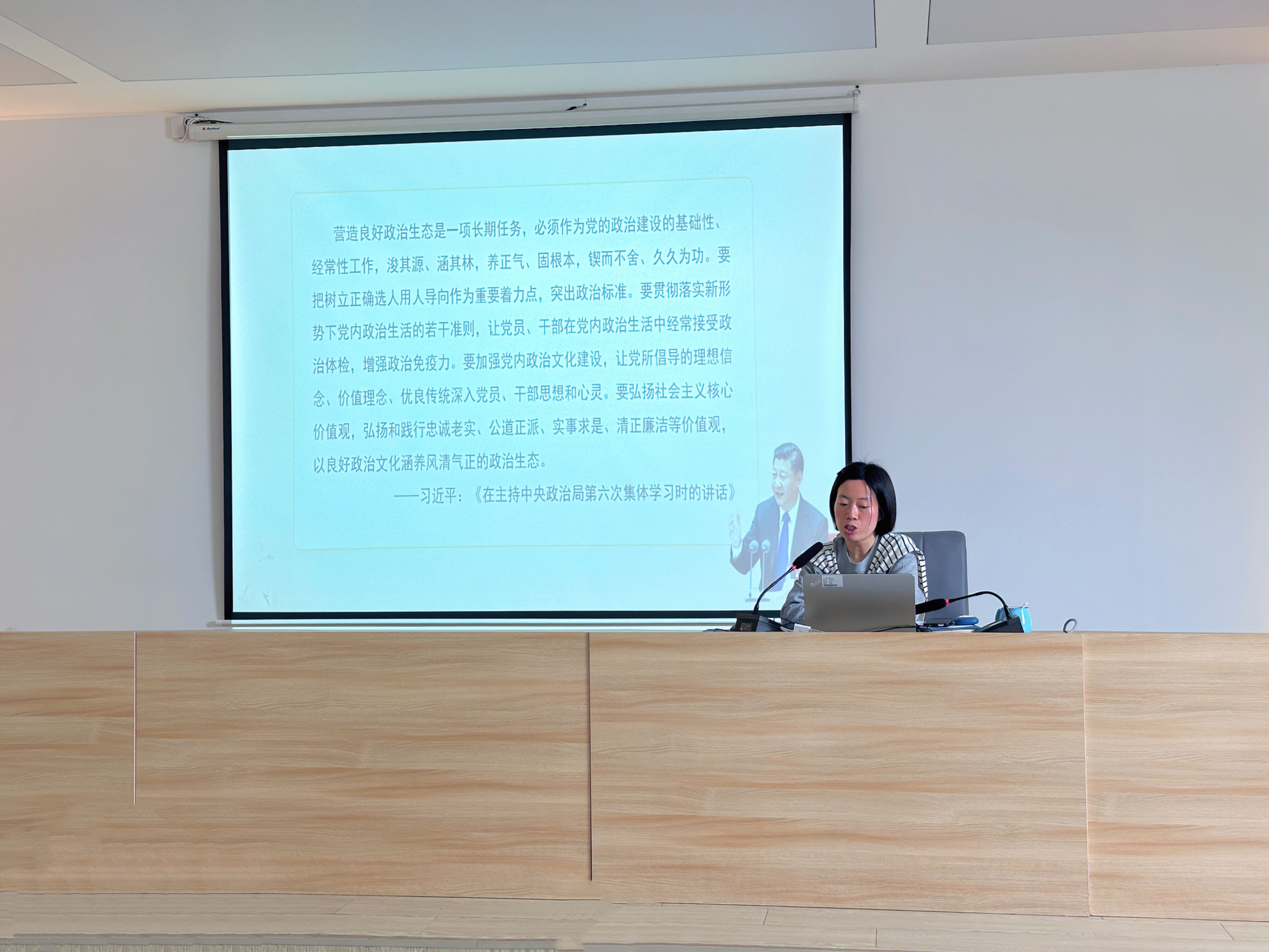 王露仪围绕“挺纪在前 牢守底线”这一主题,聚焦新修订的《中国共产党纪律处分条例》进行学习和解读,深入浅出地阐述了条例中的规定,使大家对党的纪律要求有了更清晰、更深刻的认识。她还强调要进一步强化党性锻炼,进一步增强学习党章党规党纪的自觉性,真正使学习贯彻的过程成为强化纪律意识、加强党性锻炼的过程。
