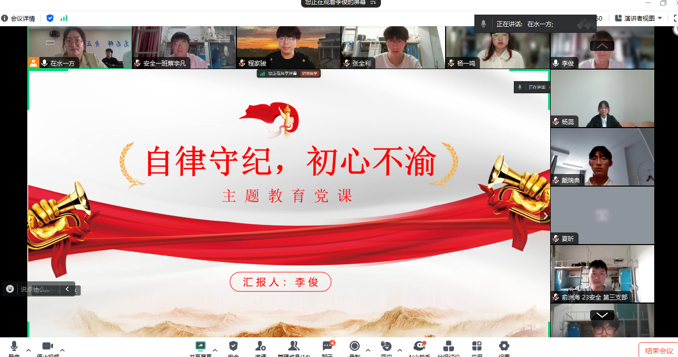 为加强师生党员对党的纪律的学习与理解,进一步提升他们的党性修养和规矩意识,6月6日上午,土木工程学院在水木楼西501开展了以“学纪律,知敬畏,守底线,做表率”为主题的微党课比赛。比赛由学院党总支主办,学院学生第二党支部承办。学院党总支书记王瑜、各党支部书记、支部党员代表及21组参赛选手参加。选手们来自霍里山校区和郑蒲港校区,为解决跨校区问题,本次比赛创新采用线下与腾讯会议线上相结合的方式进行。