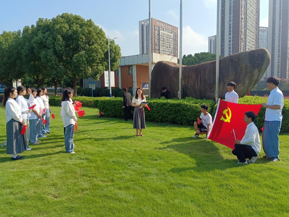 随后,全体党员在支部书记王露仪的带领下,面向党旗庄严宣誓,重温了入党誓词,铮铮誓言回荡在校园上空,彰显着党员们的坚定信仰。
