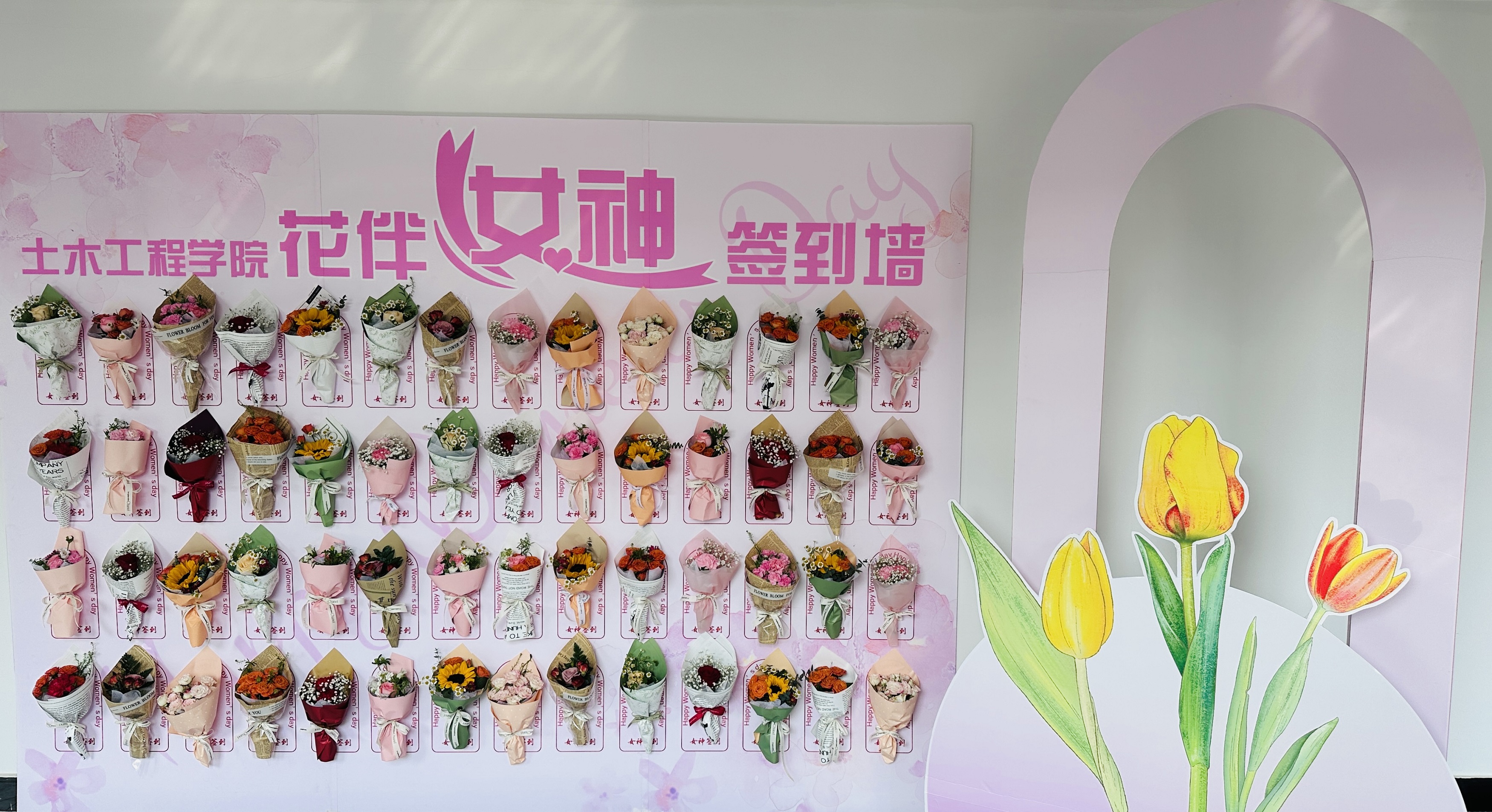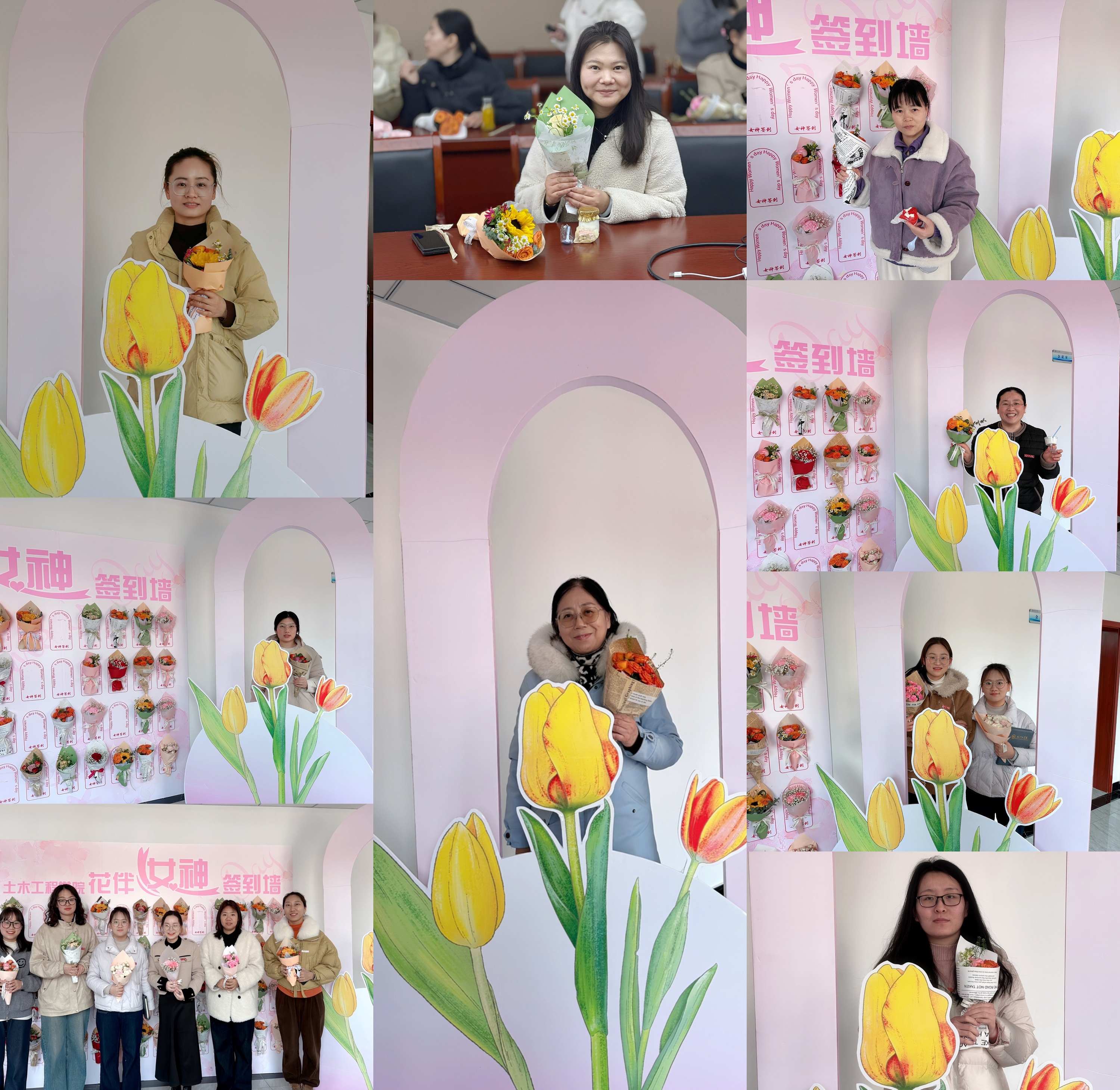 活动伊始,学院为女教职工们精心准备了精美的定制花束和专属相框道具。