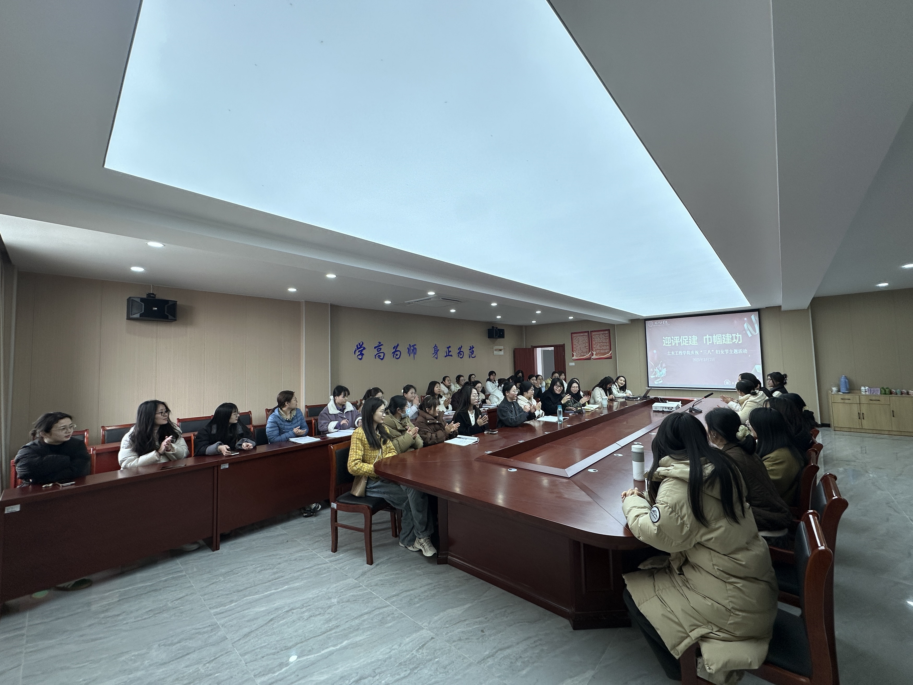 为庆祝第115个“三八”国际劳动妇女节,弘扬女教职工在教育事业中的奉献精神,激励全体女教师在迎评促建工作中贡献巾帼力量,3月7日下午,土木工程学院妇女工作委员会在水木楼西501会议室举办了以“迎评促建 巾帼建功”为主题的三八妇女节活动。学院女教职工们欢聚一堂,共同度过了一个温馨而充实的节日。
