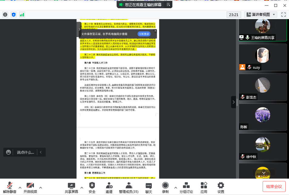 5月4日下午,土木工程学院党总支召开了腾讯全体教师党员线上学习会议,组织学习《中国共产党普通高等学校基层组织工作条例》,会议由党总支副书记王瑜主持,全体教师党员参加了会议。