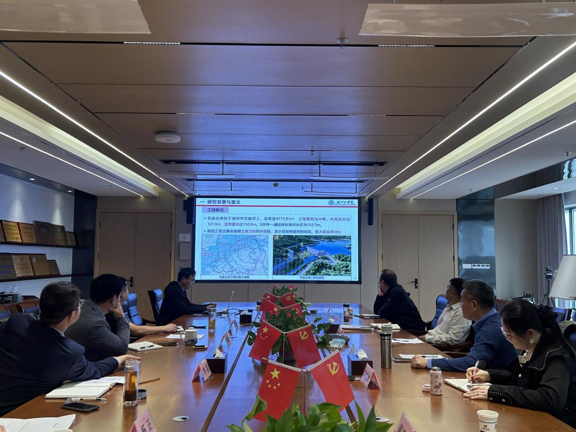 在科研汇报环节,刘胜博士汇报了“花庙水库智能灌浆”研究设想,重点介绍了韧性环保灌浆新材料、精准联动灌浆工艺及智能灌浆成套技术方案。蒋亚清教授汇报了水工混凝土抗裂性能提升的研究设想,朱云鹤教授介绍了坝基开挖工程施工期地质动态反馈与边坡稳定性控制研究思路。与会人员就相关技术问题进行了深入讨论,并就后续合作机制、项目联合申报、成果转化路径等达成初步共识。