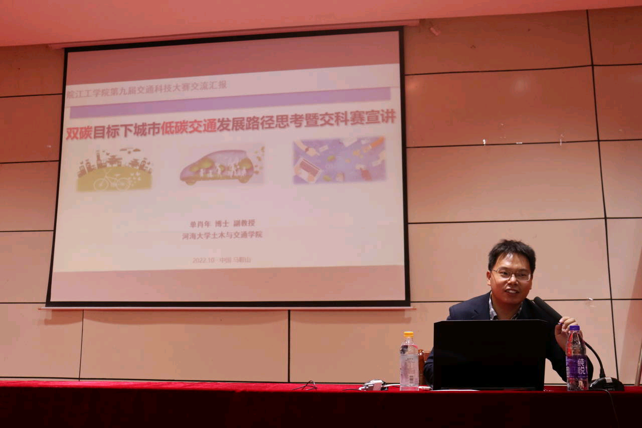 本次大赛的主题是“低碳交通”,赛前为了帮助参赛人员更好地理解大赛主题,寻找合适的切入点,主办方于10月12日邀请河海大学单肖年副教授为大家进行双碳目标下城市低碳交通发展路径思考暨交科赛宣讲,学生收获颇多。初赛期间,参赛人员通过多方面的准备,如资料收集、文献阅读等,提交了15参赛组作品,经过评委决定,共有10组作品进入决赛。
