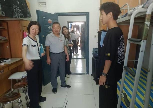 为了进一步的了解同学搬迁入住霍里山校区后的学习生活情况,院长唐德高、院党总支书记王瑜、党总支副书记程志鹏、分团委书记俞越,以及22级辅导员王露仪、李燕菊等老师于9月1日上午深入22级学生寝室走访。走访过程中,各位老师查看了学生新搬入宿舍的基础设施、环境卫生等状况,亲切地向同学们询问宿舍搬迁是否顺利、生活上有什么困难等问题。同学们纷纷表示,此次能够顺利按时搬入新宿舍,得益于学院为大家提供帮助和支持,既有志愿者团队帮忙指路和搬运行李,还有各位老师的提前走访调查和现场帮助。各位老师也充分听取了同学们对新宿舍的建议,并表示在一定程度上满足同学们的生活需求,同时也嘱咐同学们要加强身体锻炼,鼓励学生认真学习,积极调整状态,在新学年新环境以更加饱满的精神状态投入到学习工作中。