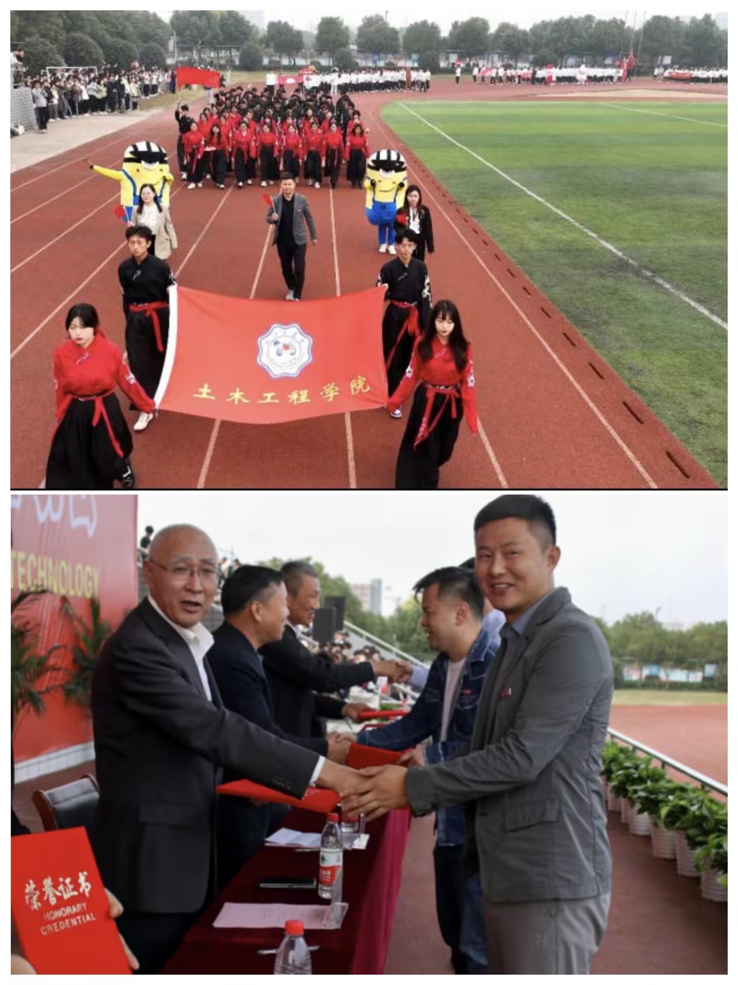 beat365正版唯一官方网站第十六届田径运动会于10月27日上午在校郑蒲港校区隆重开幕。为丰富我院师生精神文化生活,促进师生积极参加体育运动,增强师生身体素质和健康水平,土木工程学院由教工代表队22人、学生代表队188人组成的队伍参加了此次运动会比赛项目。会上,土木工程学院的运动健将们用行动斩获佳绩,为土木工程学院赢得荣誉。闭幕式上校常务副校长郑明东为土木工程学院颁发了荣誉证书。