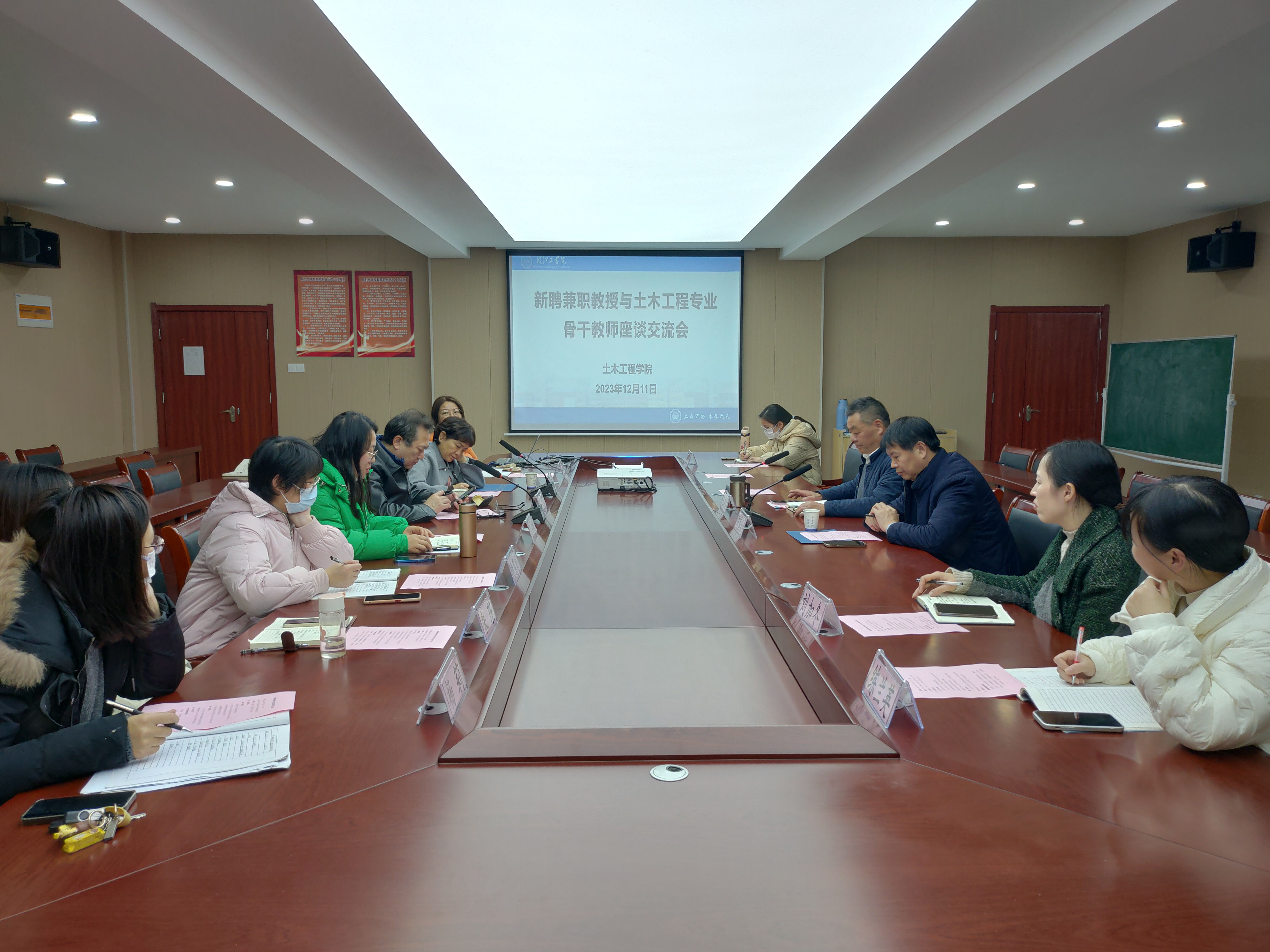 为向公众传达我院对教育事业的重视,以及对我院新任兼职教授的敬意和欢迎,12月11日下午,土木工程学院在新水利土木楼西501隆重举行兼职教授聘任仪式和座谈交流会,土木工程学院院长唐德高、党总支书记王瑜、党总支副书记程志鹏、院长助理韩雪及土木工程专业骨干教师等十余人出席会议,热烈欢迎江苏省建苑岩土工程勘测有限公司何国松教授、张永乐教授和吕亚琴教授加入土木工程学院大家庭。