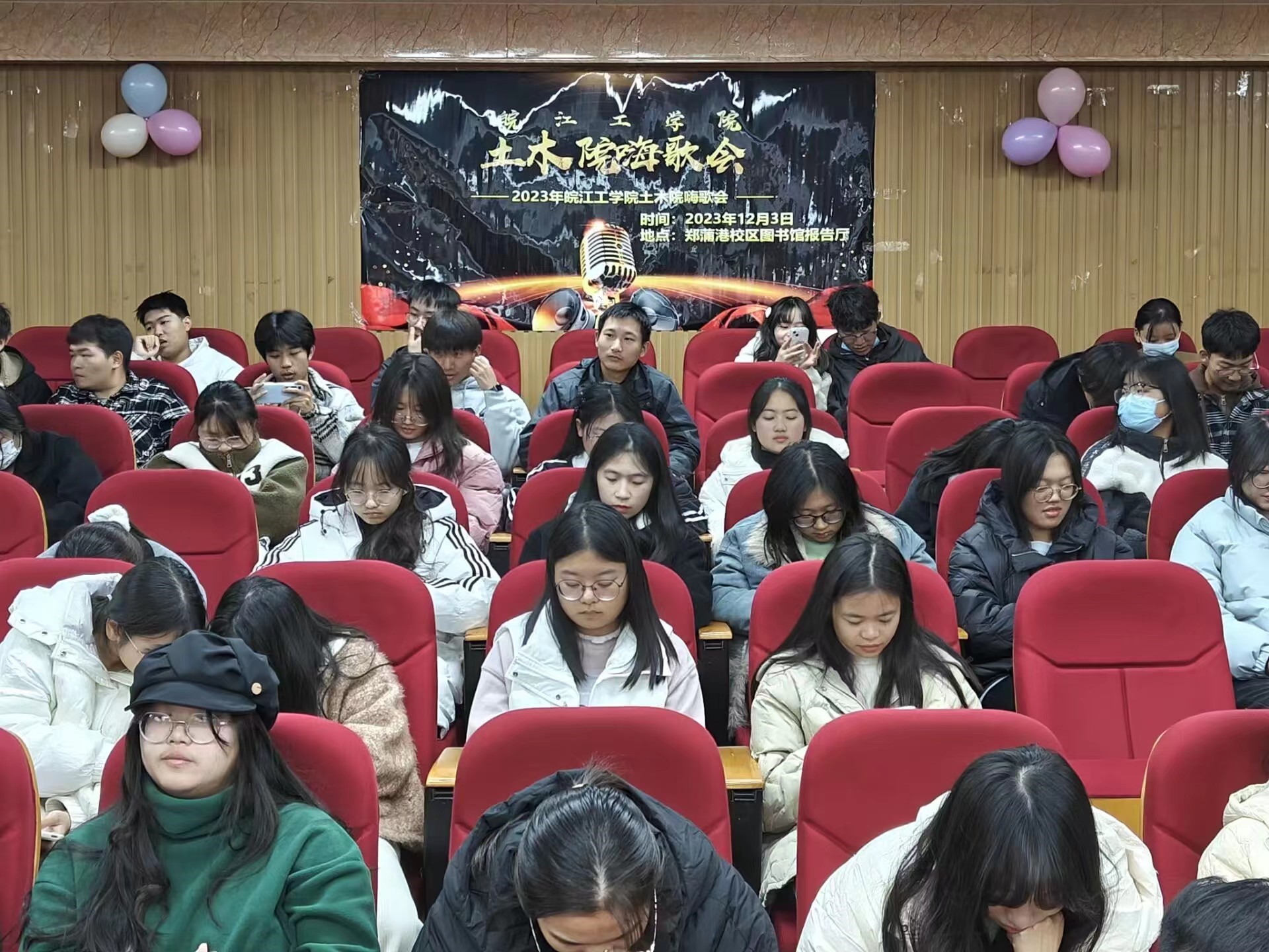 12月3日中午,“音为有你,声而不凡”beat365正版唯一官方网站土木工程学院嗨歌会活动在郑蒲港校区图书馆报告厅成功举办。出席活动的有校乐器团团长张华玥、大艺团团长史高阳、周靖媛、蒋飞宇以及土木工程学院学生会主席陈雪松、吴意、张家龙、王韩、文艺部部长王世凡,本次活动以“释放激情,燃烧青春”为主题,旨在通过音乐的力量,激发大学生的激情与活力,构建良好的校园文化环境。