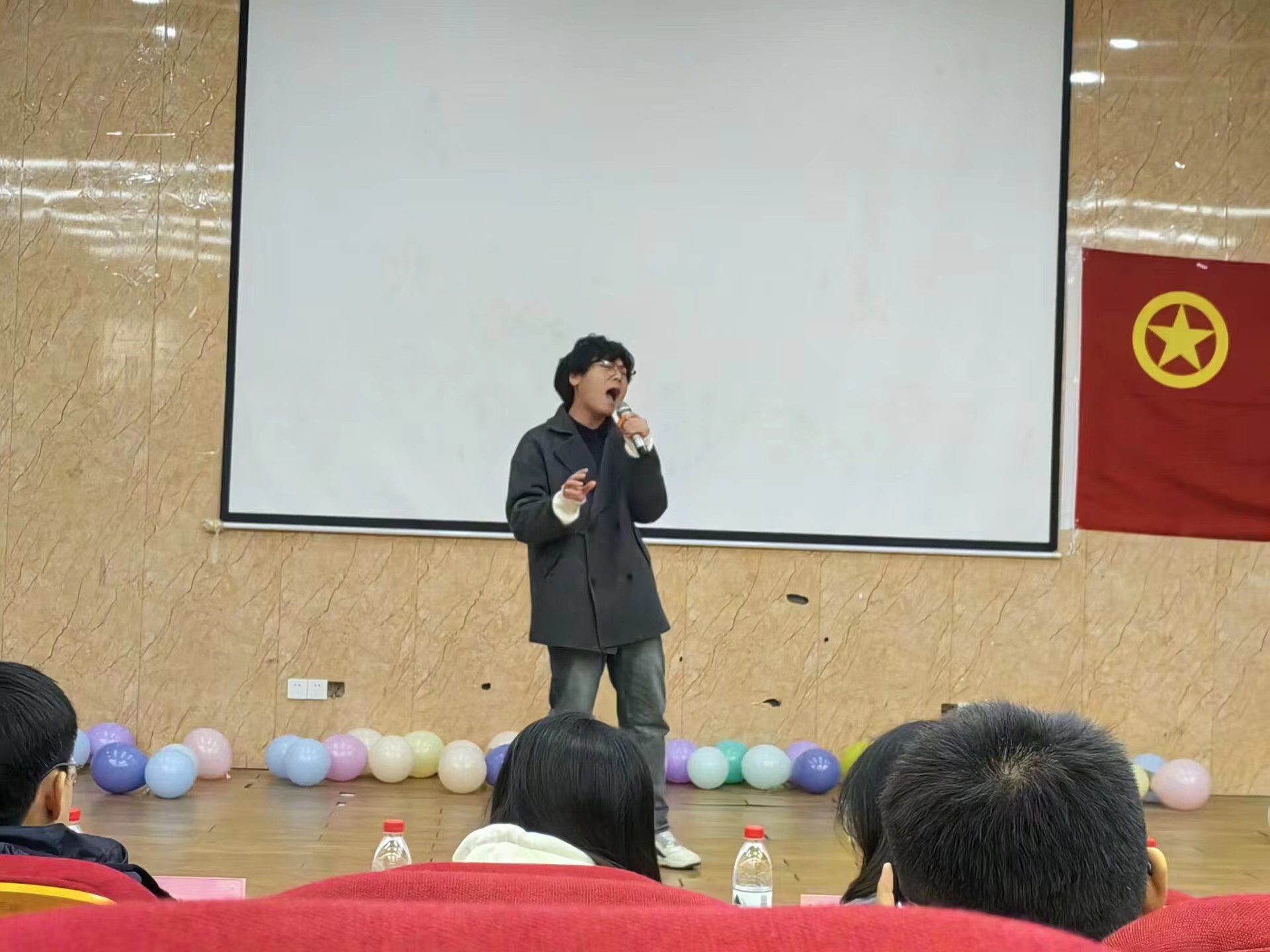 活动伊始,张浩同学以一首《我的中国》拉开了嗨歌赛的帷幕,紧跟着是徐子恒同学舒缓深情的《静悄悄》,李佳雪王梦钰同学活泼欢快的《New boy》,孟子森同学柔情似水的《蒲公英的约定》,一首首歌曲点燃了观众的激情,每位同学都展现了非凡的实力。