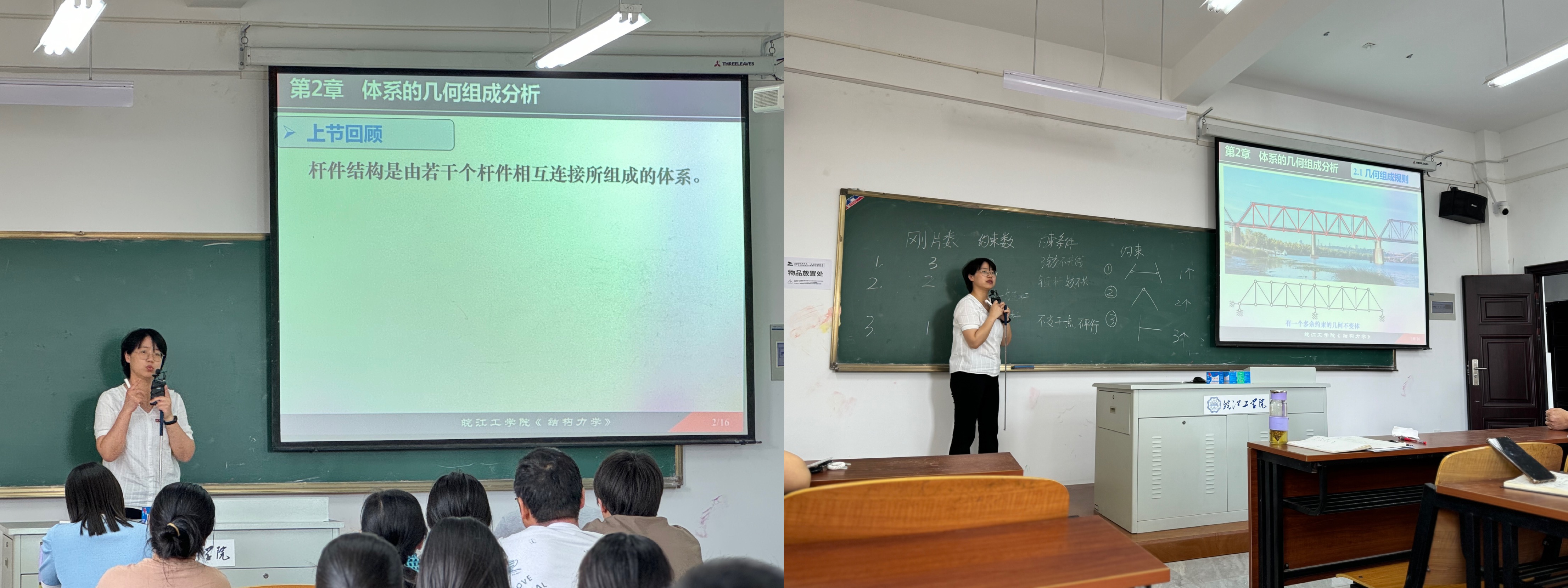熊慧婷老师首先进行了课堂回顾,课堂中把每个力学知识点与实际工程相联系,贴近实际,注重应用。并结合力学知识,教育学生在工程设计中,要发扬工匠精神,细节决定成败。以思政元素作为课程收尾,让示范课得到升华。