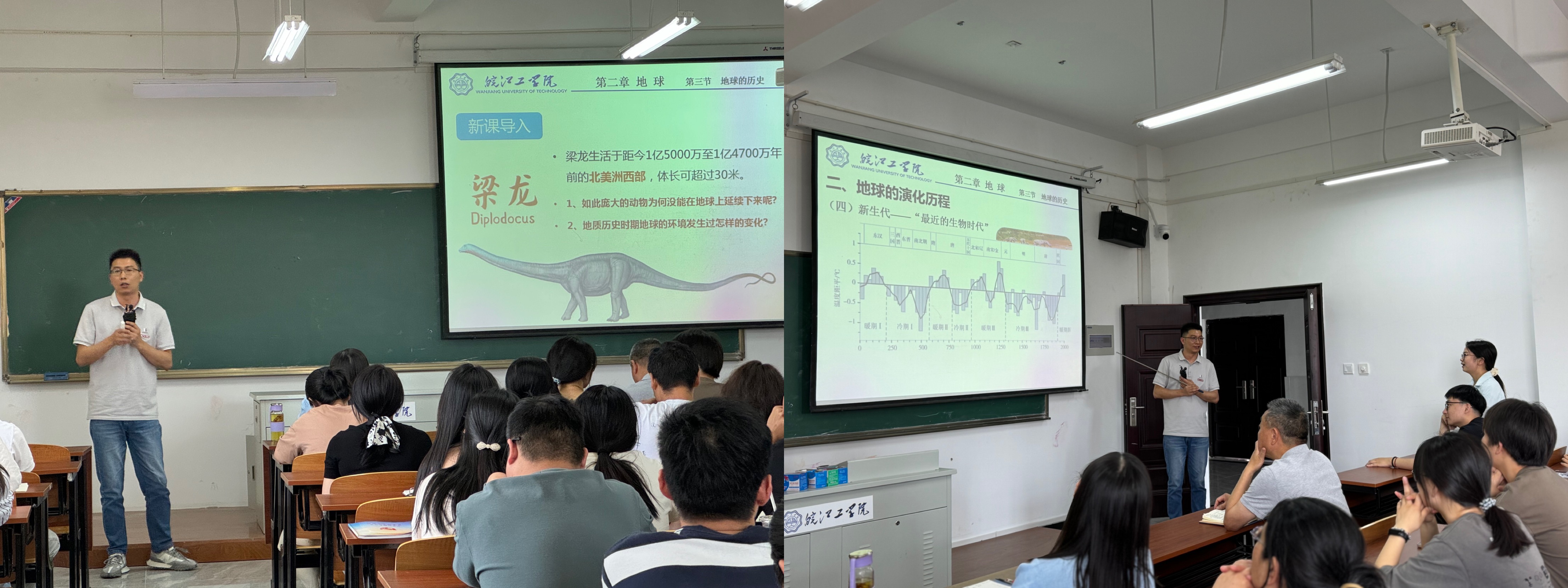 活动中,刘静老师以图片导入,教学过程融入视频、提问等元素,把地球的发展历程浓缩成24小时来更加形象有趣的展现出来,把知识点讲的有声有色。把教、练、总结紧密结合,节奏把握合理,从知识讲授到典型练习,各个环节给予细致、精练的总结。