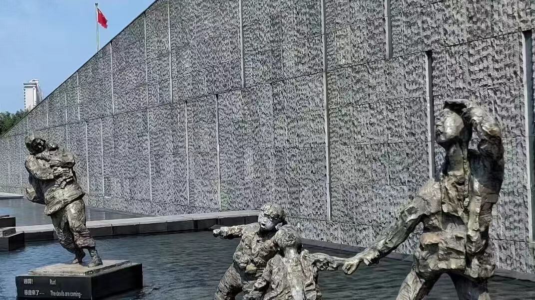 8月11日实践团来到了侵华日军南京大屠杀遇难者同胞纪念馆。据讲解员介绍,南京大屠杀发生于1937年12月13日至1938年1月之间,当时日军占领了南京城,对中国平民进行了大规模的屠杀和掠夺。据历史记录,南京大屠杀中有30多万名中国平民被屠杀,其中包括妇女儿童和老人。这是一段非常黑暗的历史,也是中国人民永远不能忘记的惨痛教训。1985年南京市就在原日军集体屠杀遗址和遇难同胞从葬地江东门建起了侵华日军南京大屠杀遇难同胞纪念馆。纪念馆有7处广场,23座单体雕塑,1座大型组合雕塑,8处各种形式的墙体和17座各种造型的碑体。集暴行,抗争,胜利,宣判,和平五大主题为一体,组成了南京重要的城市记忆 。成员们经过安检,一排雕塑映入眼帘。母亲悲伤地抱着自己的孩子,瘦骨嶙峋的人努力发出呻吟,被强暴的女子,失去亲人在寒冷中哭泣的孩子,抱着被杀孩子的爷爷,一幕幕的场景令人心痛。