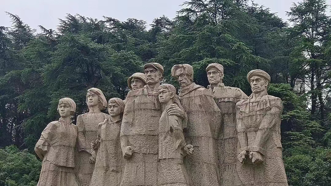 在指导老师盛禄的带领下,成员们首先来到了雨花台烈士陵园,南京雨花台烈士陵园位于南郊一座小山岗,山冈上风景秀丽,就是这么一处风景绝佳的地方。在国民政府统治时期却成了屠杀共产党人和革命志士的刑场,先后有近十万革命先烈在此惨遭杀害。新中国成立后,为缅怀先烈英灵在雨花台上建造了这座烈士陵园。此次活动中,实践成员从雨花台风景区北门出发步行参观至南门。从林园北大门入园内,首先映入眼帘的是巨型烈士雕塑群像。组群像共塑造了九位烈士的光辉形象,周围的松柏长青象征着革命烈士的忠魂永垂不朽。成员们以肃穆的态度瞻仰这些群像,向他们表达深深的敬畏之情。