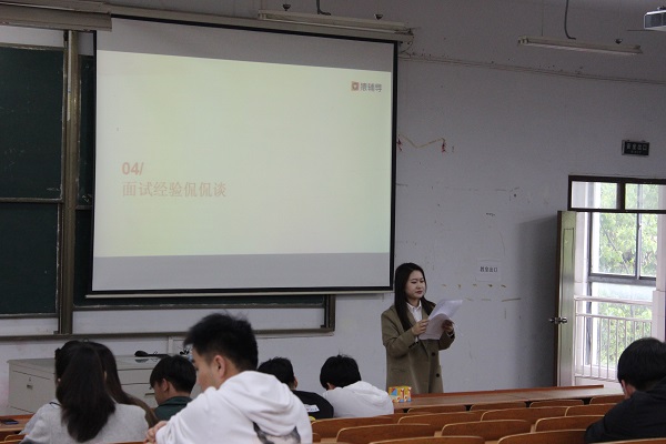 在讲座过程中,凌老师与学生们进行热烈的互动、讨论和交流,从HR的专业角度传授了很多求职经验,同学们表示受益匪浅。全场气氛轻松愉快,笑声不断, 讲座在同学们的掌声中圆满结束。此次讲座丰富了同学们的就业求职知识,增强了同学们的职场竞争力,为我院在校生未来成功就业奠定了良好的基础。