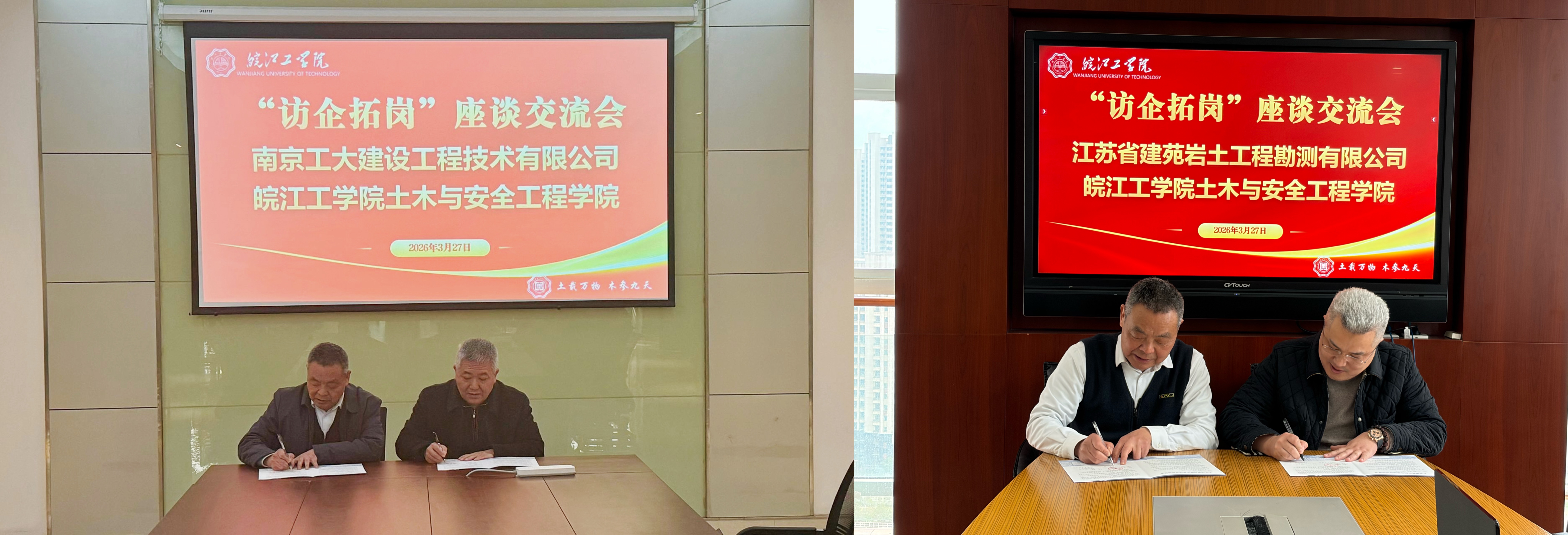 为深化产教融合,推动人才培养与行业需求精准对接,助力毕业生高质量就业,3月27日,土木与安全工程学院院长唐德高、党总支书记王瑜、副院长李杰如、党总支副书记班兵、工程结构教研室主任徐中秋等一行,赴江苏省建苑岩土工程勘测有限公司和南京工大建设工程技术有限公司开展“访企拓岗”促就业活动,并举行校企合作座谈交流。