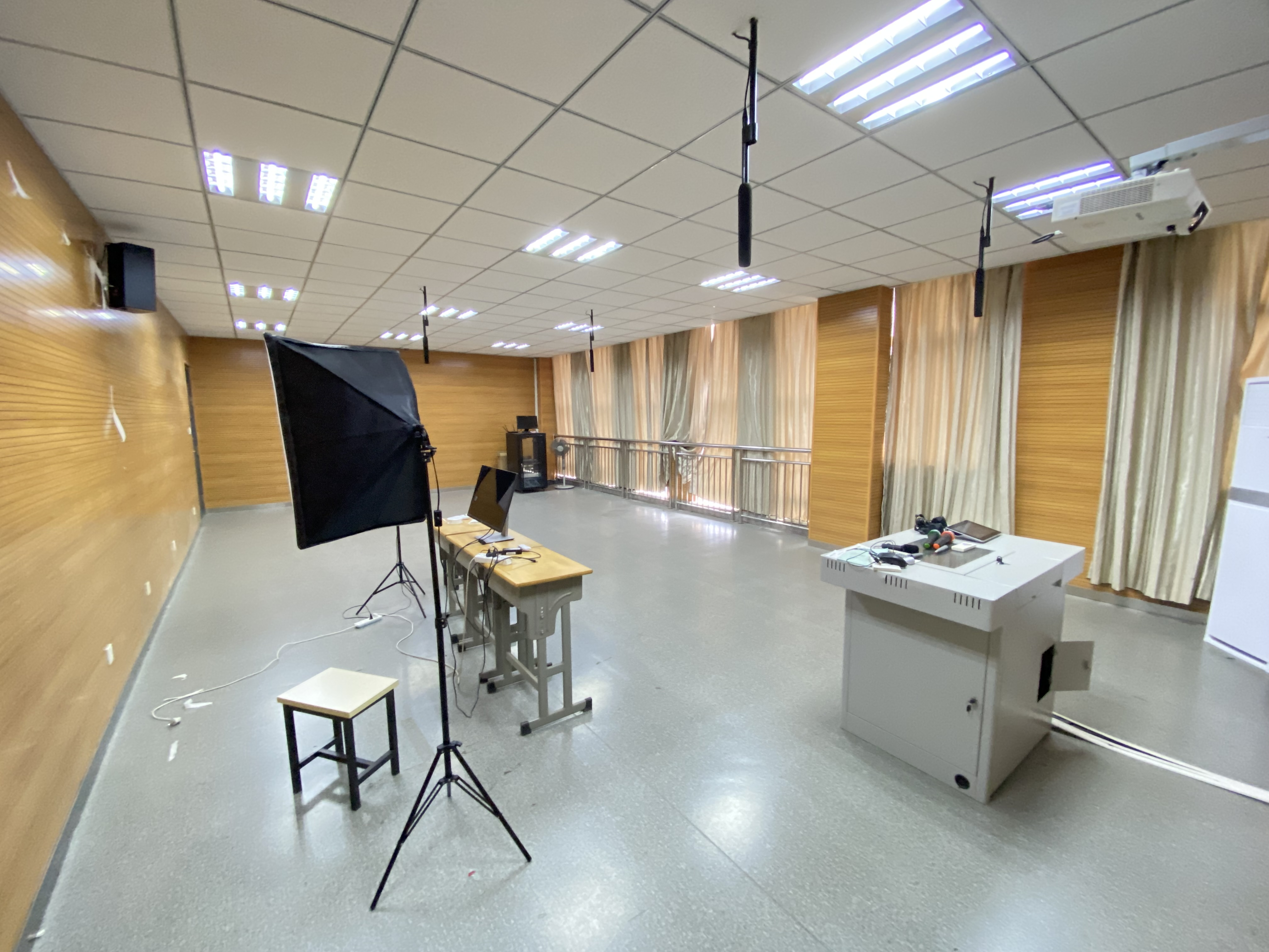 (5)数字录播室,位于东教310,现任管理员:周宇赫;现任教师艺设院专职教师:张慧,闫磊,王艺霖,胡媛媛,张妍等;实验室目前有全套数字录播系统,供同学进行项目驱动实践,服务专业主要包含数字媒体艺术专业;实验室服务课程:《数字图像后期处理 》《互动媒体创作与实践 》《概念空间短片创作》等。