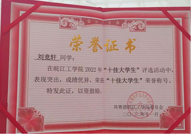 日前,艺术设计学院20级数媒专业3班刘竞轩同学在beat365开展的2022年度“十佳大学生”评选活动中获得“十佳大学生”荣誉称号,这也是艺术设计学院学生首次获得这项殊荣。