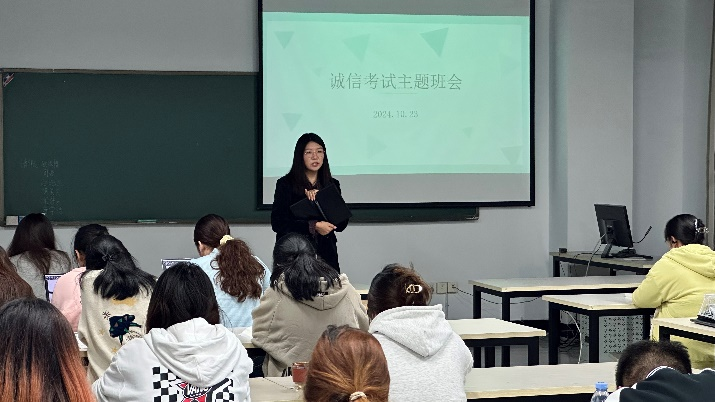 22级产设专业班会中,辅导员程楠楠强调了考风考纪的重要性。强调考试是对同学们学习成果的检验,也是对同学诚信品质的考验,良好的考风考纪不仅关系到同学们的学业成绩,更关系到同学的未来发展。提醒同学们不要抱有侥幸心理,切勿触碰考试纪律的红线。同时,结合实际案例,向同学们阐述了作弊行为的严重后果,让同学们深刻认识到诚信考试的重要性以及诚信品质在人生中具有重要意义。