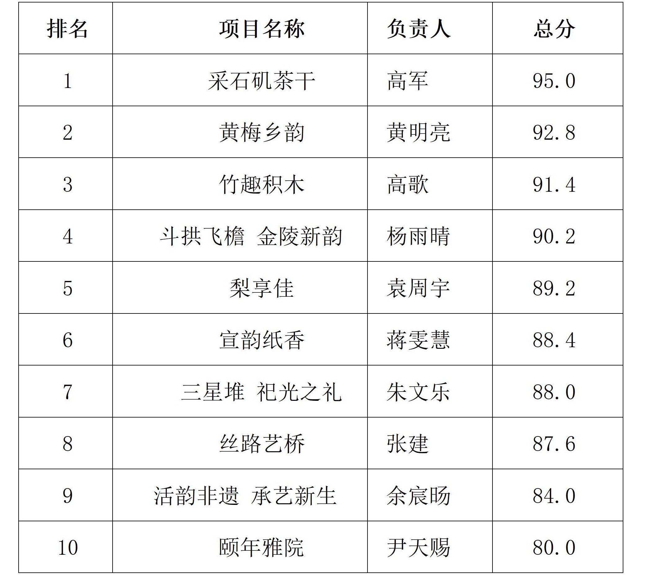 经评审组认真评议和激烈讨论,十支参赛队伍的最终得分与排名结果如下: