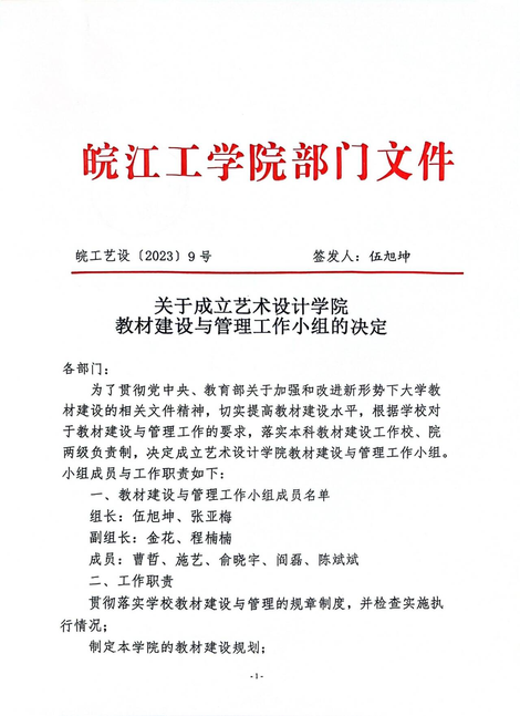 关于成立艺术设计学院教材建设与管理工作小组的决定