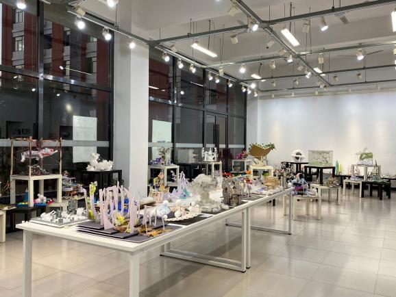 艺术设计学院展厅,建筑面积约100 平方米,内有展示桌、展架、人工照明等设备。展厅集中展示环境设计、数字媒体艺术、产品设计专业的优秀课程设计、毕业设计、写生及竞赛作品,是学院教学成果和学生才华展示的重要平台。