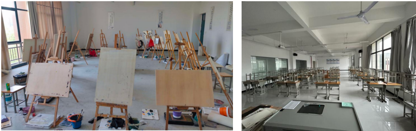 基础实训室通过学生实训,主要培养学生的造型、创作能力,以及色彩方面的搭配能力,为以后的专业课程学习打基础。实训室配有画架、画板、画凳、课桌、课椅、静物、临摹道具、几何石膏体、道具摆放桌、陈列架、收纳柜、多媒体教学设备、投影仪等.