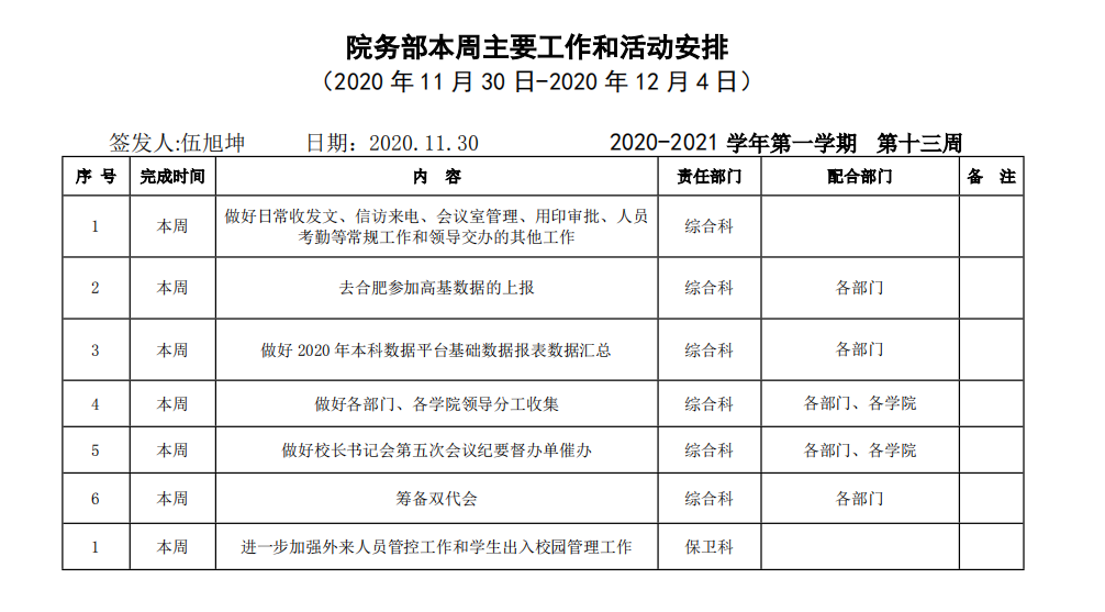 beat365正版唯一官方网站院务部第十二周工作安排