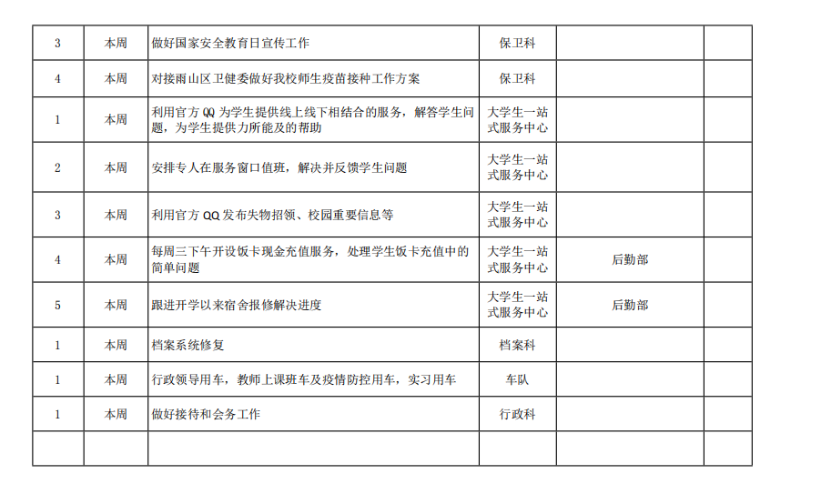 beat365正版唯一官方网站院务部第五周工作安排