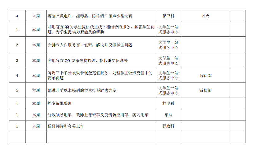 beat365正版唯一官方网站院务部第十周工作安排