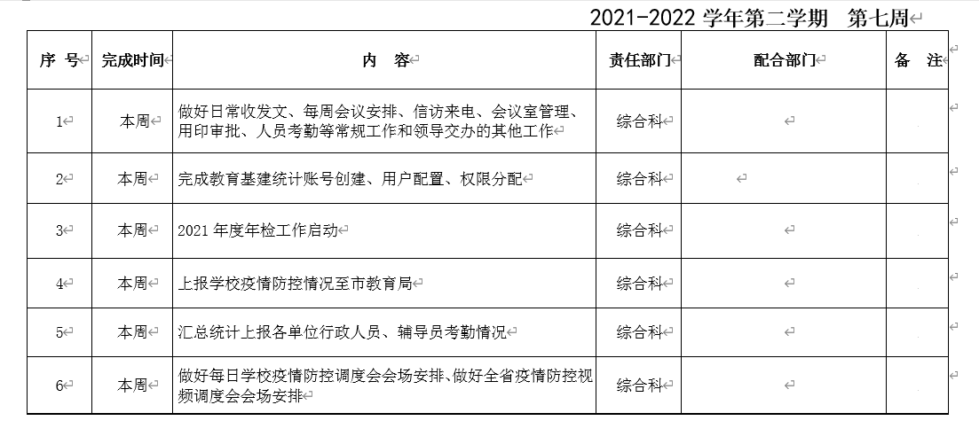 beat365正版唯一官方网站院务部第七周工作安排
