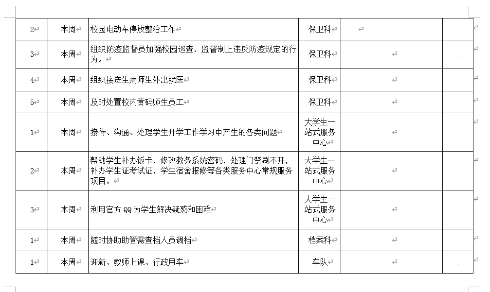 beat365正版唯一官方网站院务部第十周工作安排