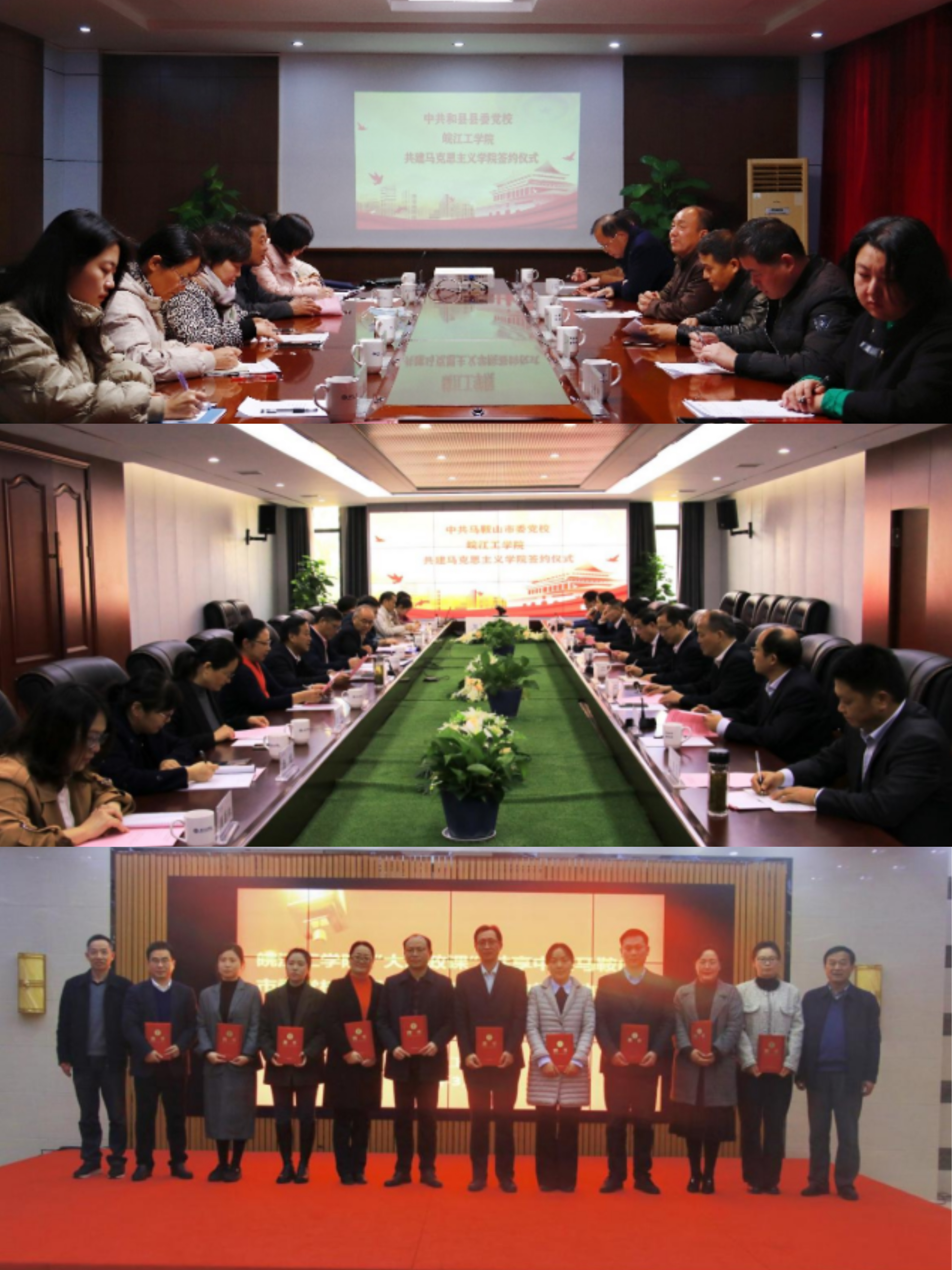学院锚定“大思政课”建设方向,凝聚各方资源,加强对外开放型、内涵丰富型的高质量马院建设目标,建院以来,学院联合中共马鞍山市委党校、中共和县市委党校签订战略协议,充分发挥不同领域资源效用促进学院的学科建设、学术研究、人才培养工作,进一步提升教学研究水平,提升思政课教学质量,提升思政课的实效。发挥水利专业特色优势,我院秉承“河孕育文明、海凝聚智慧”的人文气魄,致力于“专特通结合、中西马融汇”的学术理想,将进一步深入开展思想政治理论课教学与研究、以及为地方政府和单位开展文化咨询等社会服务,以高水平的成果回报社会各界的关心和支持。