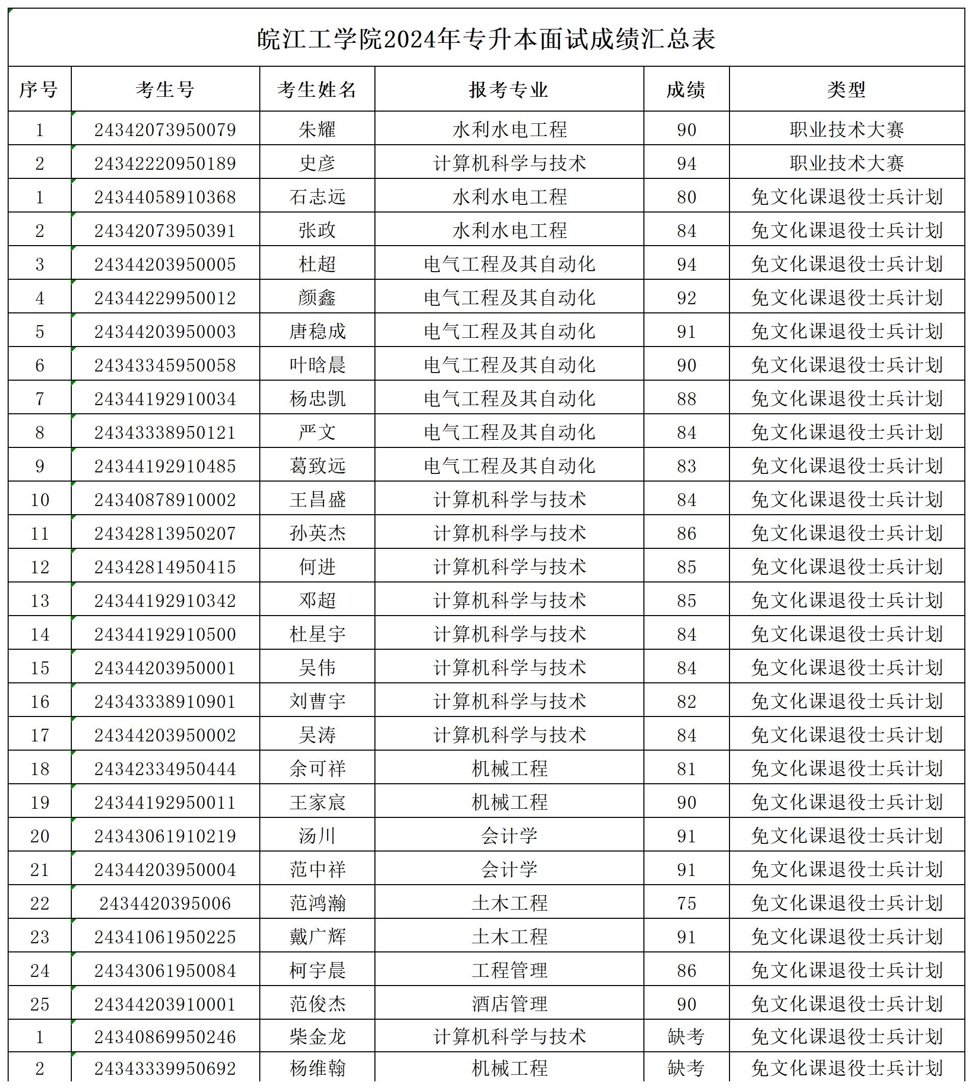 beat365正版唯一官方网站2024年免文化课退役士兵及职业技能大赛面试成绩公示