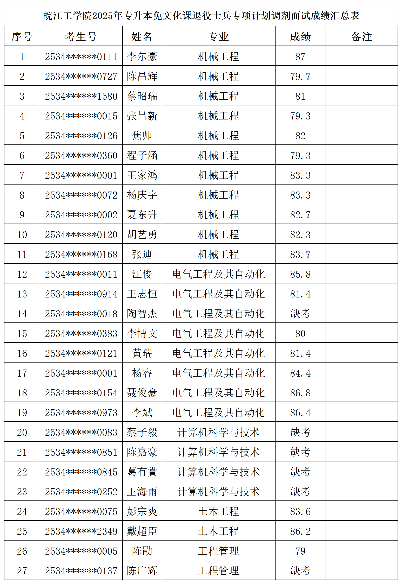 beat365正版唯一官方网站2025年普通高校专升本免文化课退役士兵专项计划调剂面试成绩公示