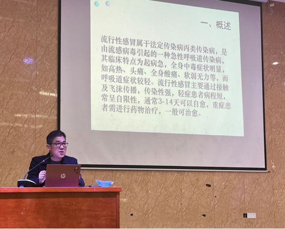 两位主讲嘉宾分别从传染病的概念、特点、传播途径、传染病的流行过程,以及传染病控制的基本原则等五大方面为同学们进行了专业详细的讲解。重点向学生科普了流行性感冒、甲流、肺结核、艾滋病等传染疾病的预防,让同学们明白了传染病是可防、可控、可治的,并且希望同学们树牢并自觉践行“健康第一”理念,当好自身健康第一责任人。倡导大家养成戴口罩、勤洗手等良好卫生习惯,加强身体锻炼,保持健康生活方式,提升健康素养和自我防护能力。