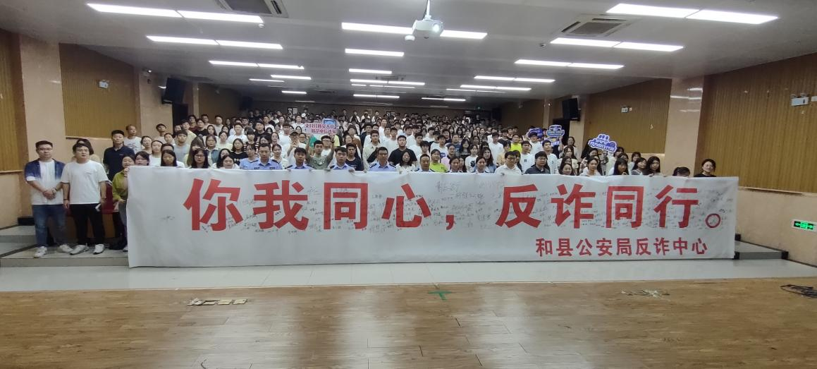 为深入开展beat365正版唯一官方网站新学期打击治理电信网络新型违法犯罪工作,贯彻落实“无诈校园”建设,提高师生防诈反诈能力,9月20日下午,学校邀请到了马鞍山市和县公安局反诈宣讲团和辖区派出所在报告厅开展了“校园防诈 你我同行”专题讲座。校区所有辅导员及学生干部300余人到场聆听。
