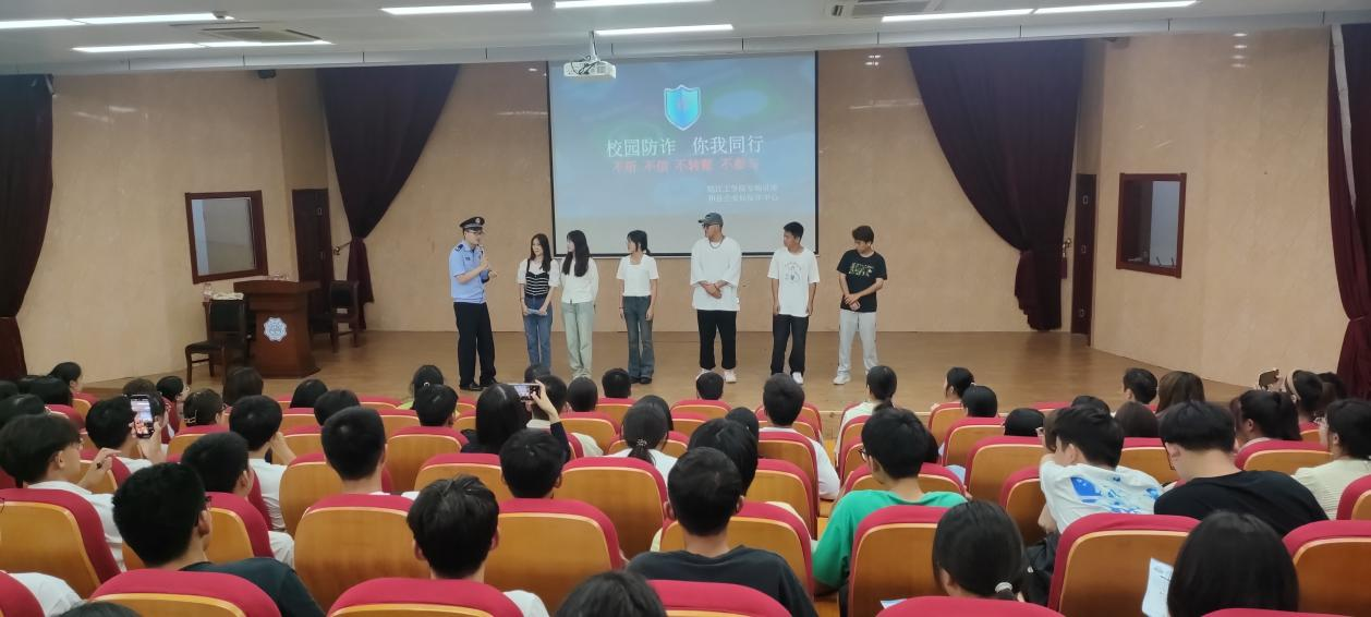 讲座中,民警向学生们详细介绍了电信网络诈骗中的刷单返利、校园贷、冒充电商客服、虚假游戏交易等发案较高的骗局手法及特点。并结合真实的案例,深刻剖析了遭遇诈骗的全过程和受害人的心理活动,揭露了诈骗背后的套路和伎俩,为师生敲响了警钟。此外,反诈中心民警还详细讲解了“两卡”犯罪中嫌疑人是如何通过手机卡、银行卡等工具,引诱他人从事非法“跑分”洗钱的违法犯罪活动,让师生们深刻认识到“两卡”犯罪的危害性。