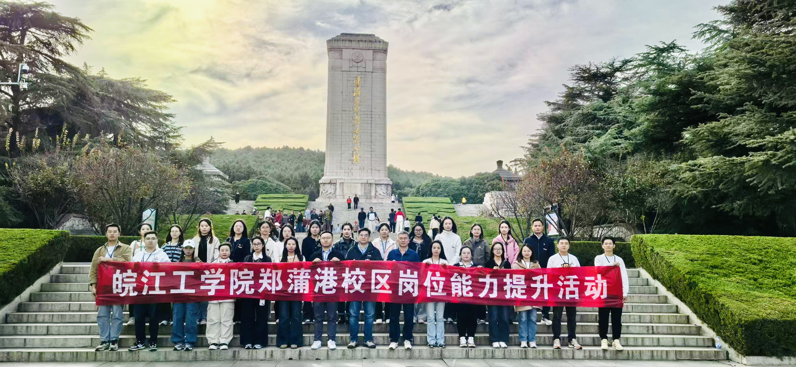 20日上午8:00-9:50,郑蒲港校区全体教职工分别参观了淮海战役纪念馆、徐州博物馆,并合影留念。淮海战役纪念园林是全国著名爱国主义教育基地与红色旅游景区,通过参观实践使得每位教职工牢记要继承弘扬我们党和人民军队的光荣传统和历史经验,在坚持和发展中国特色社会主义道路上不断前进。通过参观徐州博物馆,大家领略到雄浑大度、质朴刚健的两汉文化气韵。午休后,14:00-15:00全体教职工参观了江苏师范大学。随后,按照规定乘车返校,结束了收获满满的徐州培训之行。