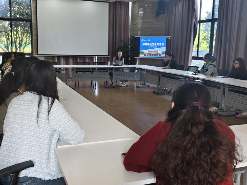 为进一步规范校区考试考务管理,严肃监考考场纪律,顺利迎接即将到来的期中考试。10月30日下午2点,郑蒲港校区教学科研办公室在校区行政楼1号会议室召开2024-2025学年第一学期考务培训会。校区全体辅导员参会,会议由教研办主任谢芳主持。