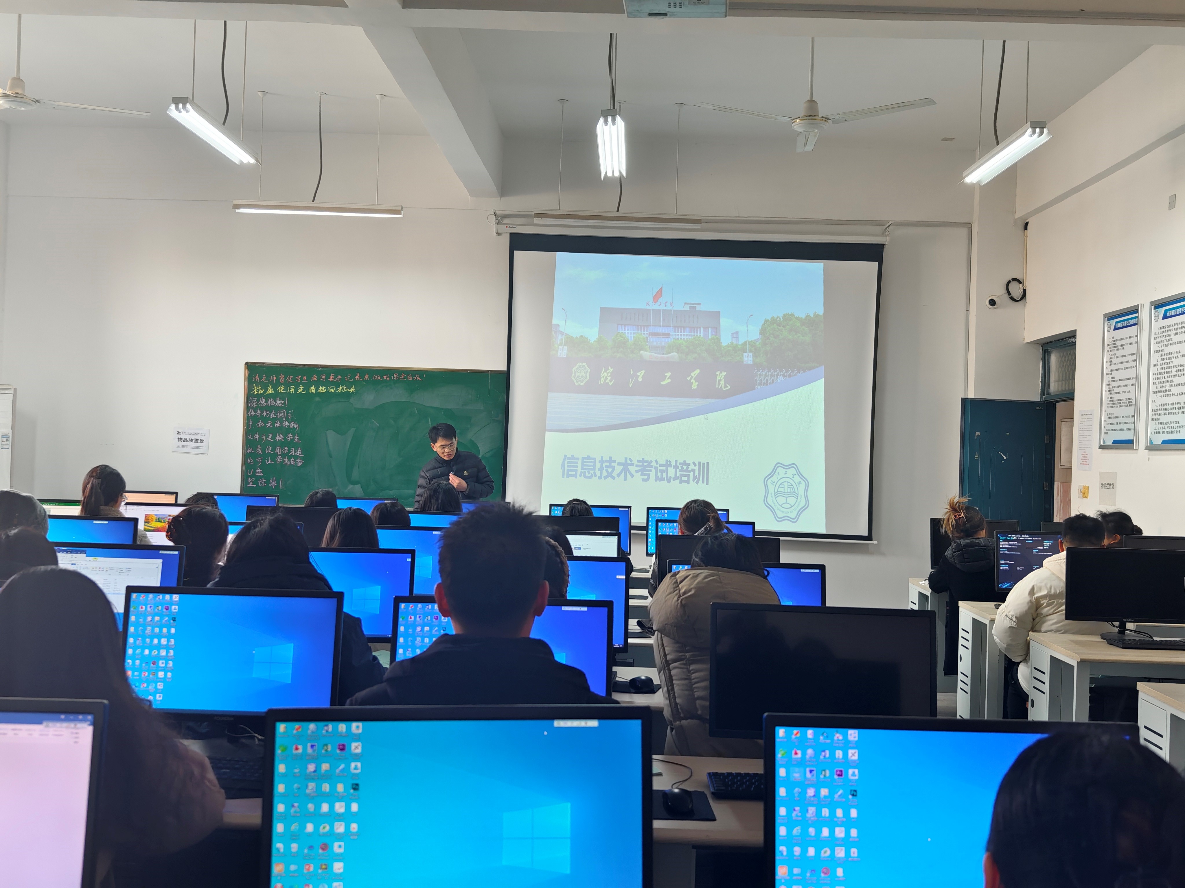 为保证信息技术应用基础期末上机考试顺利进行, 12月26日下午14:30,郑蒲港校区教学科研办公室联合校区信息中心肖飞杨老师在A楼306机房召开2024-2025学年第一学期信息技术应用基础期末上机监考培训会,校区即将参加此次监考的教师均参与培训。