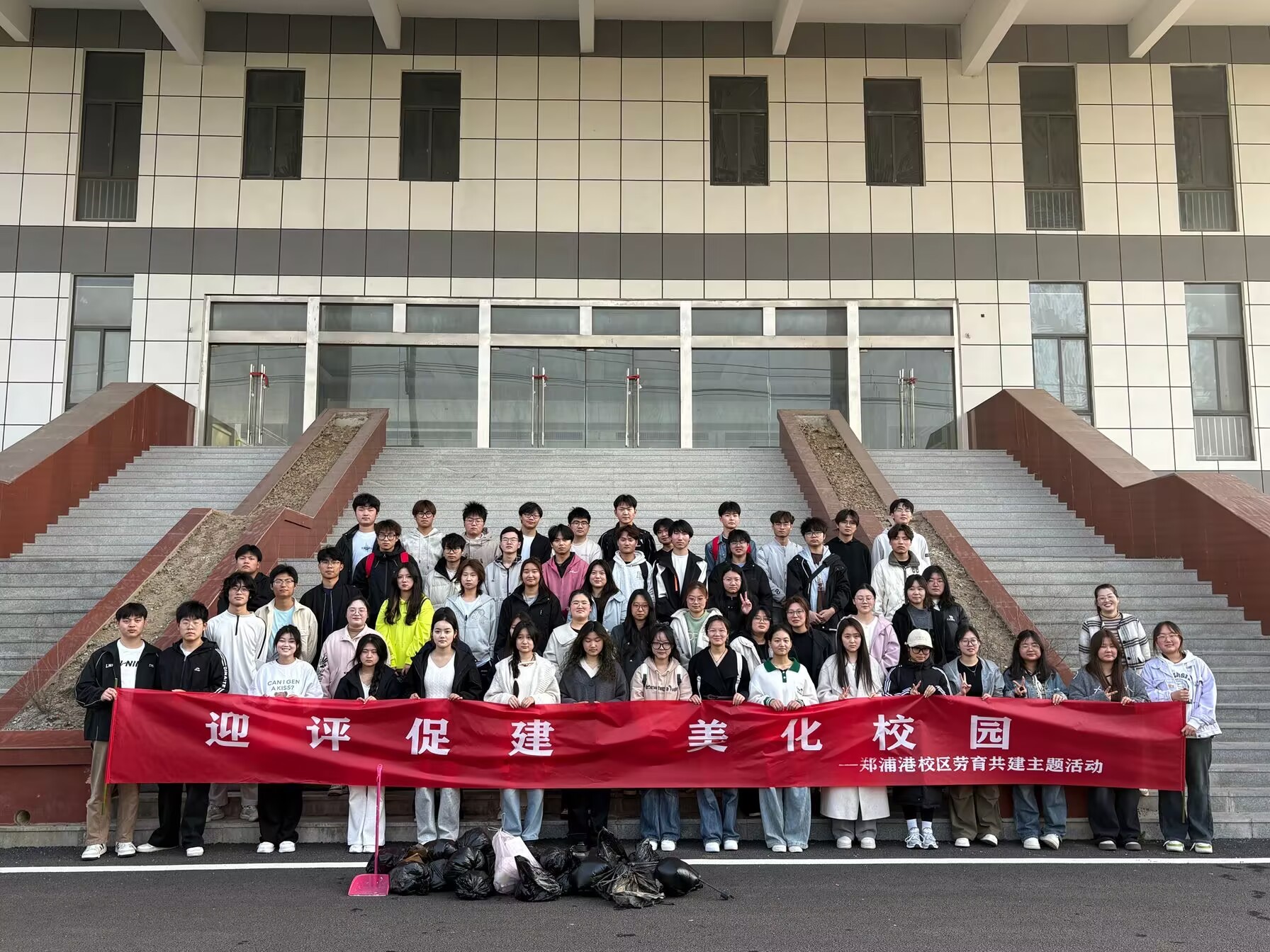 为迎接合格评估,发挥党员“双带”作用,加强新时代劳动教育,深化郑蒲港校区德、智、体、美、劳五育并举的育人理念,培养学生自觉爱护校园环境意识和劳动意识,保持良好的生活、学习环境,3月10日至3月12日,在全体辅导员的带领下,郑蒲港校区开展了本学期劳育共建志愿者活动,参与此次劳育活动的志愿者来自校区各个专业,党员师生共计500余人。