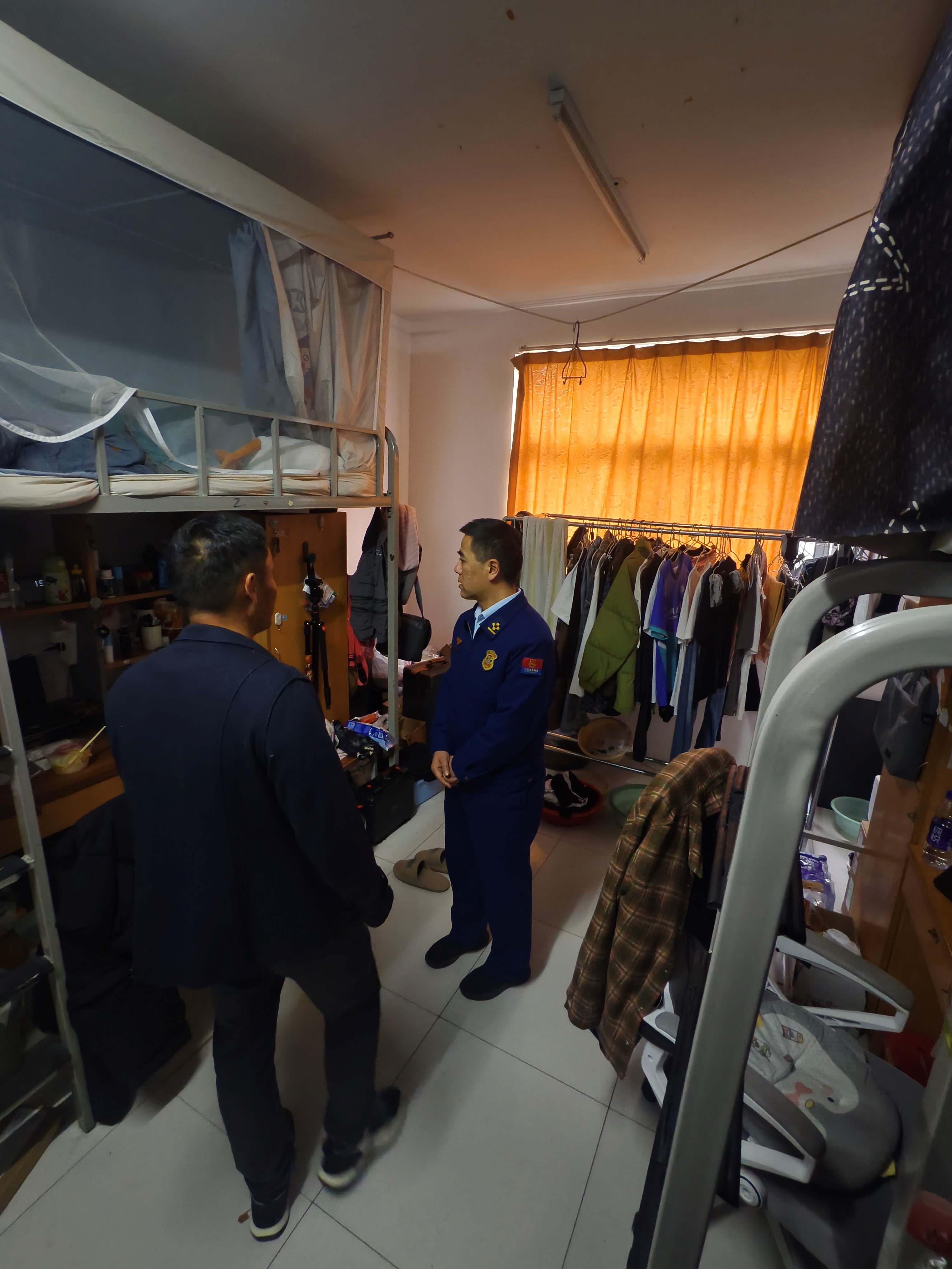 调研中,潘跃林向董川大队长详细介绍了郑蒲港校区的基本概况、消防安全管理制度、设施设备运行以及日常隐患排查等工作情况。随后,双方一同深入学校食堂、学生宿舍等重点消防部位进行了实地查看,对相关安全措施落实进行了现场交流。