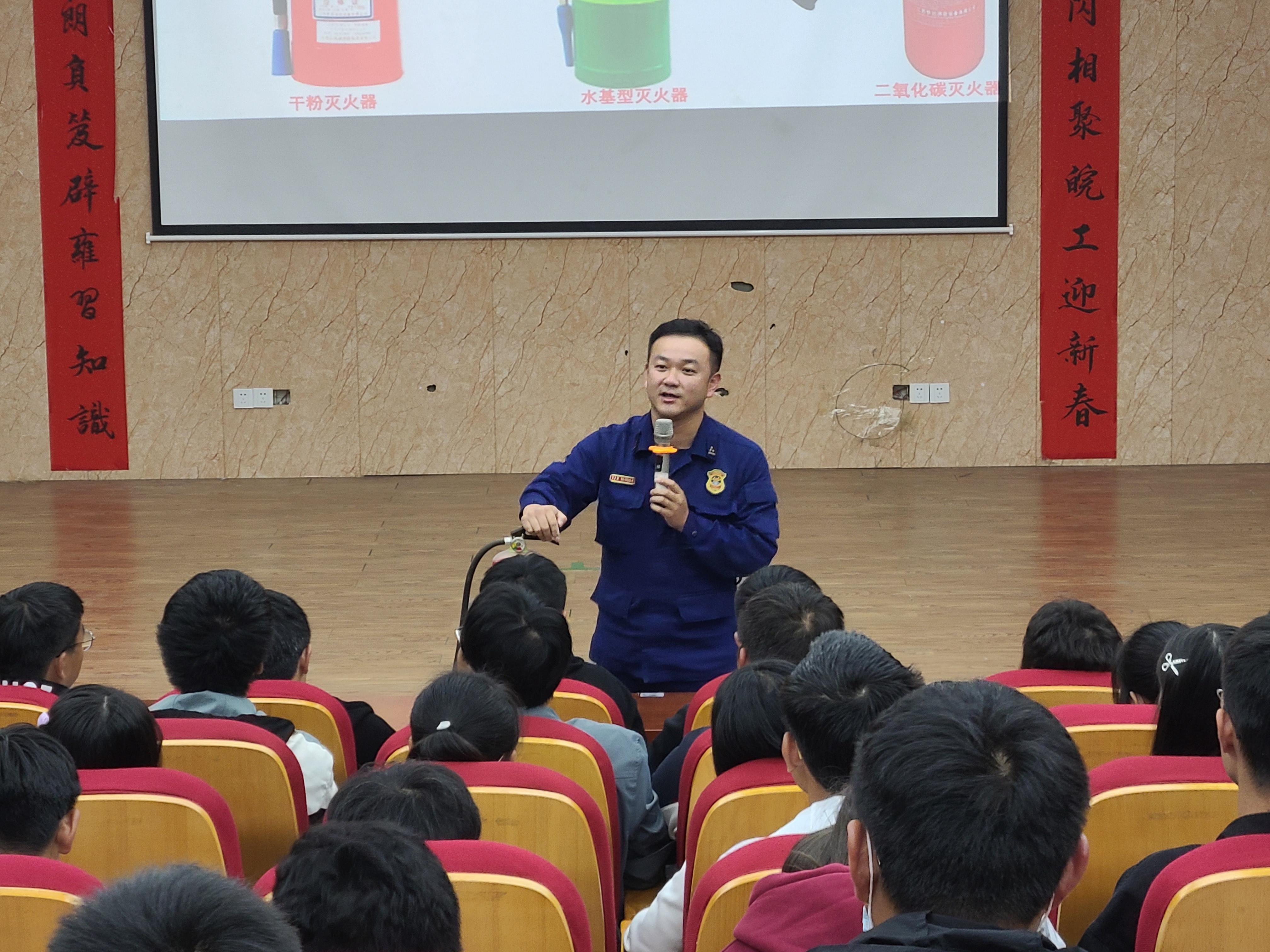 11月2日,为加强郑蒲港校区全体师生的消防安全意识,提高同学们的防火救灾实战技能。学校特邀请来和县消防救援大队王坤参谋为同学们进行应急防灾疏散理论知识教育和演习指导。